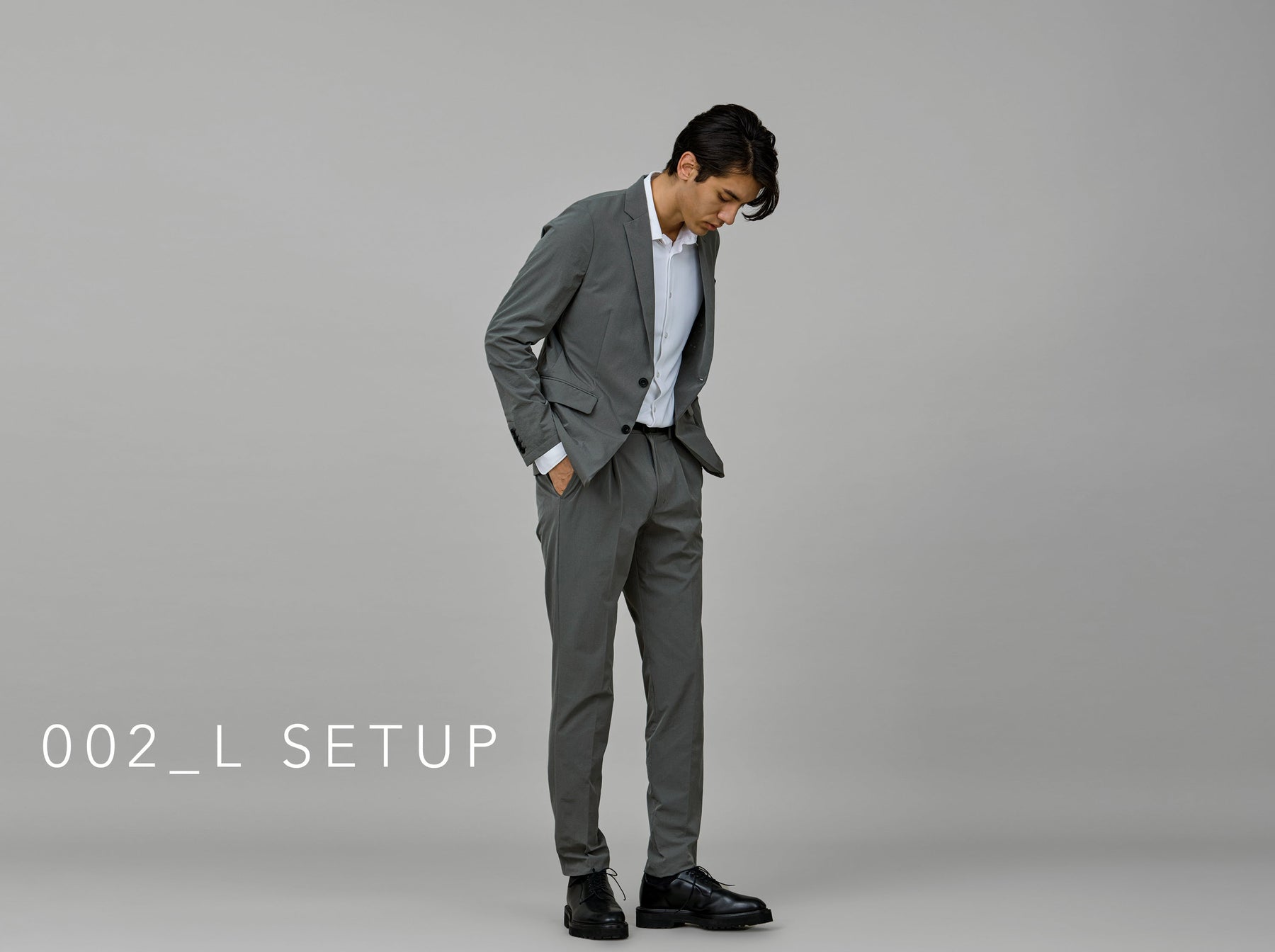観音半裏仕様、本切羽など、本格的なテーラードのディテールを備えたスタイリッシュなテーラードジャケットと、カジュアルにもドレスライクにも着こなせる汎用性の高いテーパードパンツです。