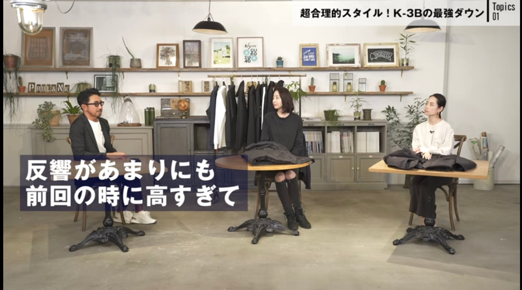 干場さんが講師を務める「B.R.ONLINE Fashion College」にて、K-3Bの秋冬新作アイテムを多数ご紹介いただきました。