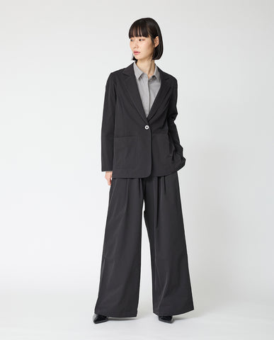 ■ 素材糸や織り方を工夫したポリエステル100%素材を使用。コットンライクな風合いと程よいハリ感、光沢感が特徴です。軽量で扱いやすく、綿素材では実現しにくい軽さと機能性を備えたジャケットに仕上げています。■ デザイン抜け感のあるオーバーサイズシルエットに太めのラペルを配し、モードな雰囲気をプラス。ウエストは緩やかにシェイプされ、さまざまなボトムスに対応可能です。ヒップを隠す丈感や、袖口のボタンを省いた仕様がシャツのように軽やかな着こなしを叶えます。■ コーディネートさらりと羽織れるオーバーサイズで、メンズライクかつエレガントなスタイルに。都会的な光沢感と軽さで、ビジネスからカジュアルまで幅広いシーンに対応します。■ 同じ生地のアイテムを見るL生地 (WOMEN)