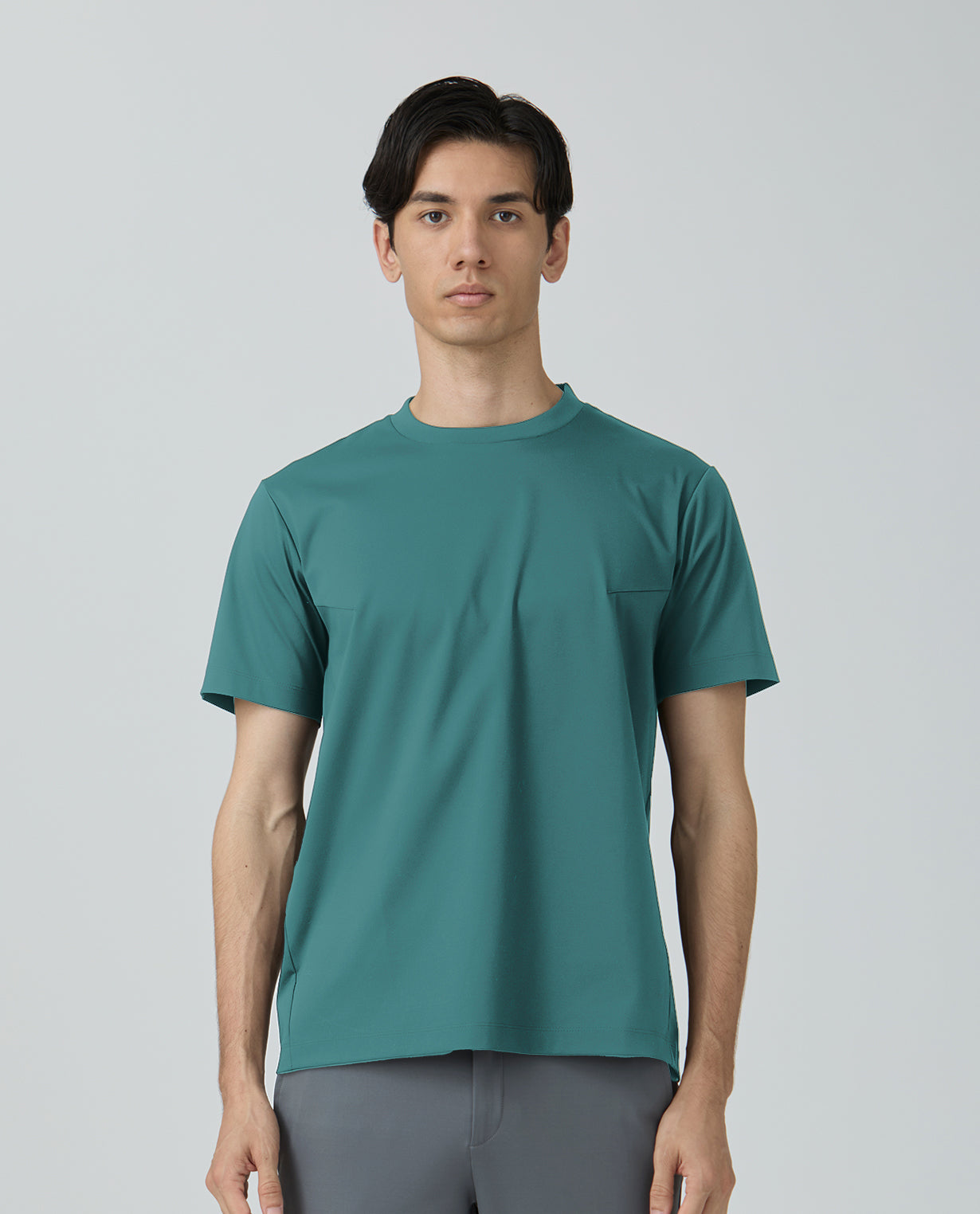 ■ 素材最高級コットンであるスーピマコットンを使用した新素材WW生地。超長綿であるスーピマコットンを使用することで、生地がしなやかでやわらかく、滑らかな肌触りになり、快適な着用感を得れます。ポリエステル繊維と合わせることで生地の滑らかさはそのままにポリエステルの特徴である吸水性、速乾性も備えたハイテク生地です。また生地にはシルケット加工を施し、シルクな光沢感を出し、よりソフトな手触りに仕上がっています。■ デザイン特徴的なパターンを採用したテーラリングTシャツ。新素材のWW生地はさらに透けにくく、1枚で着てもレイヤードで着てもコーディネートの幅が広がります。Tシャツでは珍しく、首回りの衿は前後で高低差をつけており、後ろの衿が通常に比べて約2倍高くなっています。衿腰が高く立体的な設計により、アウターを羽織った際に衿が肌に直接触れにくく、アタリや生地汚れといったストレスを軽減します。さらに、胸元にはバストダーツを取り入れることで立体感を出し、胸の厚みで裾が持ち上がりにくい設計に。脇線は斜め前に流れるよう設計されており、身体に沿う丸みと、肌と服の間にほどよい余白を確保。自然なフィット感を実現しています。ジャケットのインナーとしてはもちろん、1枚でも様になる実用性の高いTシャツです。■ 同じ生地のアイテムを見るWW生地 (MEN)