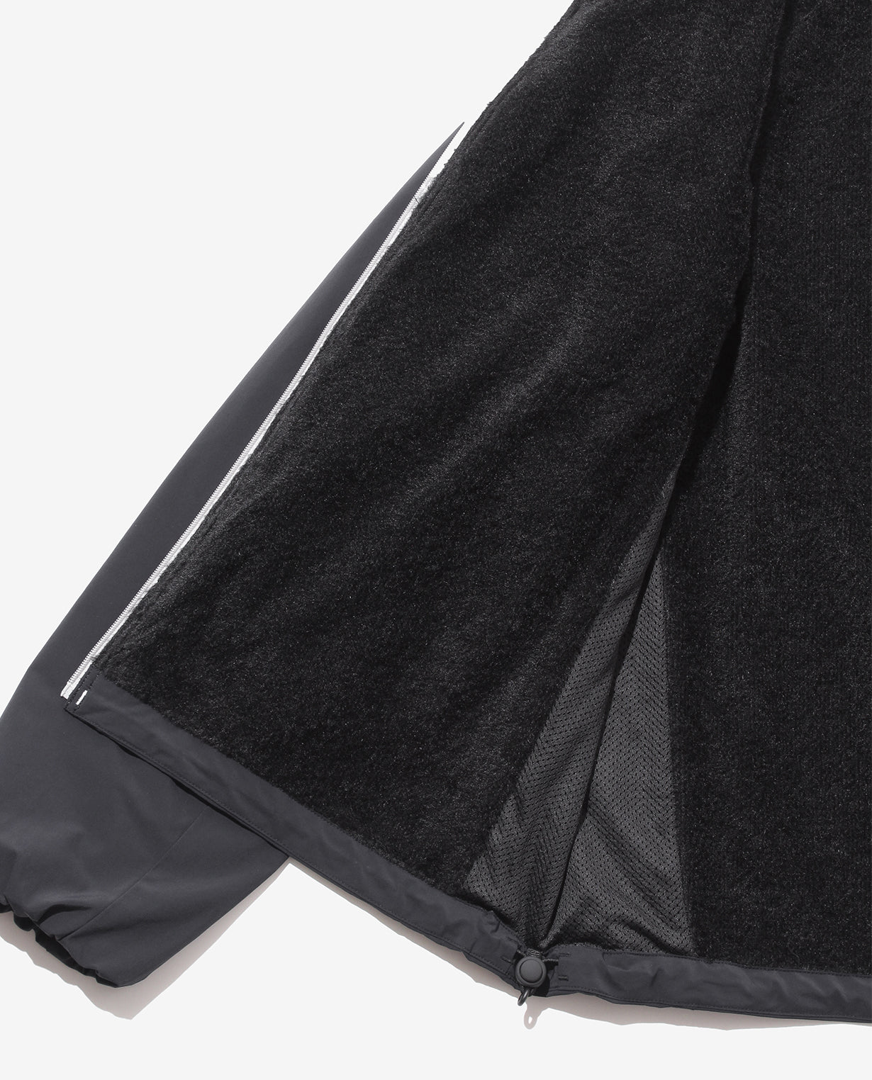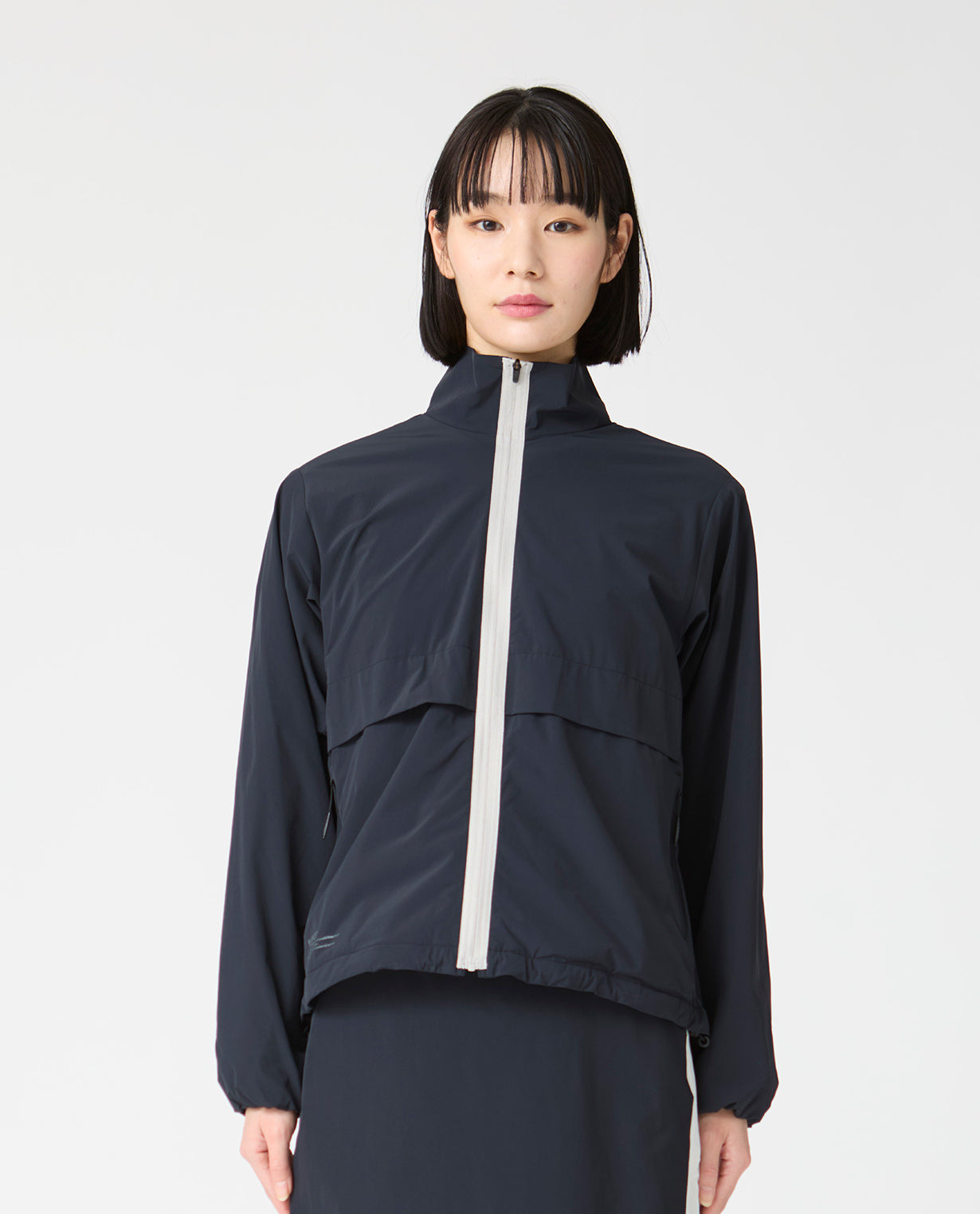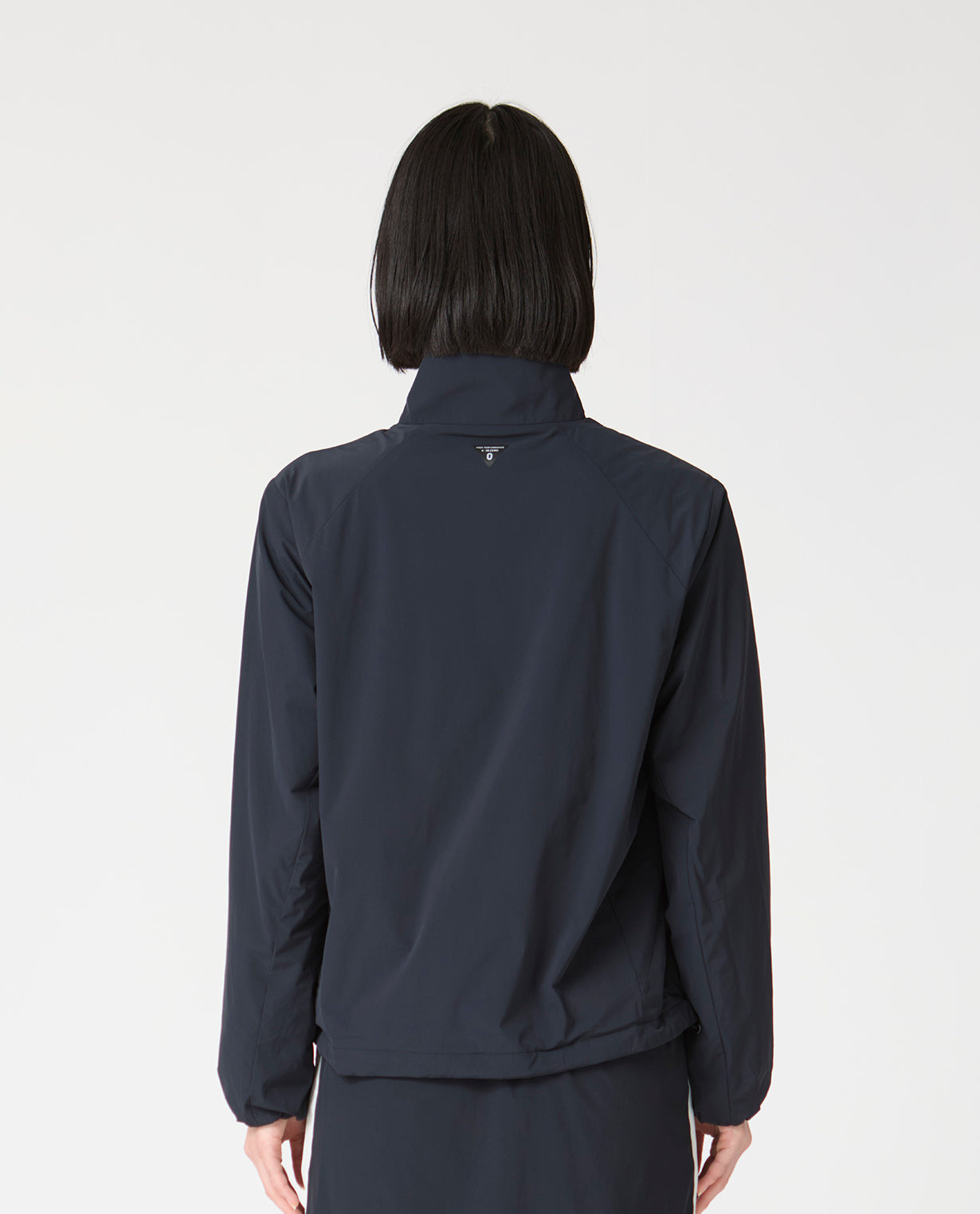 裏地には「OCTA(オクタ)®CPCP®を採用しています。オクタとは、帝人フロンティアが開発した高機能素材で、表面に8つの突起があり中心が空洞となった特殊な糸のこと。軽量で空気をたくさん含む構造になっています。そのオクタをメッシュ生地に編み込んだのがOCTA®CPCP®。片面は平滑なメッシュ・もう片面はふわふわの起毛パイル状で、中綿と裏地を一体化したようなテキスタイルです。高い保温性と吸湿速乾性・通気性を誇りながら非常に軽量なので、秋冬のアクティビティに最適です。■ デザインミニマルなデザインで一見すると防寒着とは思えない、軽量インサレーションジャケット。暖かいのに着膨れして見えないのが魅力です。裏地に高機能素材 OCTA®CPCP®を採用し、パーツによって起毛面とメッシュ面を使い分けることでより快適な着心地を実現。前後の身頃や外袖は起毛面が身体に当たるのでふんわりと柔らかく、脇や袖下は滑りのよいメッシュ面にしてあるので、保温性能を保ちながらインナーとの摩擦が起こりにくい設計になっています。前身頃の切り替え部分はベンチレーション機構になっていて、衣服内のムレを軽減。袖口はシャーリングのゴムを内側に隠し、カジュアル感を抑えています。腰ポケットの袋布も起毛になっているので、ハンドウォーマーがわりにも。スッと美しく立ち上がるスタンドカラーや配色のフロントファスナーがアクセントとなり、ミニマルなフォルムの中に機能美を感じさせます。体温調整が求められる季節の変わり目にも最適な高機能のブルゾンは、比較的にコンパクトな設計なのでゆったりしたコートの下ならミドラーとしても着用可能。軽量でストレスフリーな着心地かつ洗練されたルックスで、タウンユースからアクティブシーンまで幅広く活躍します。