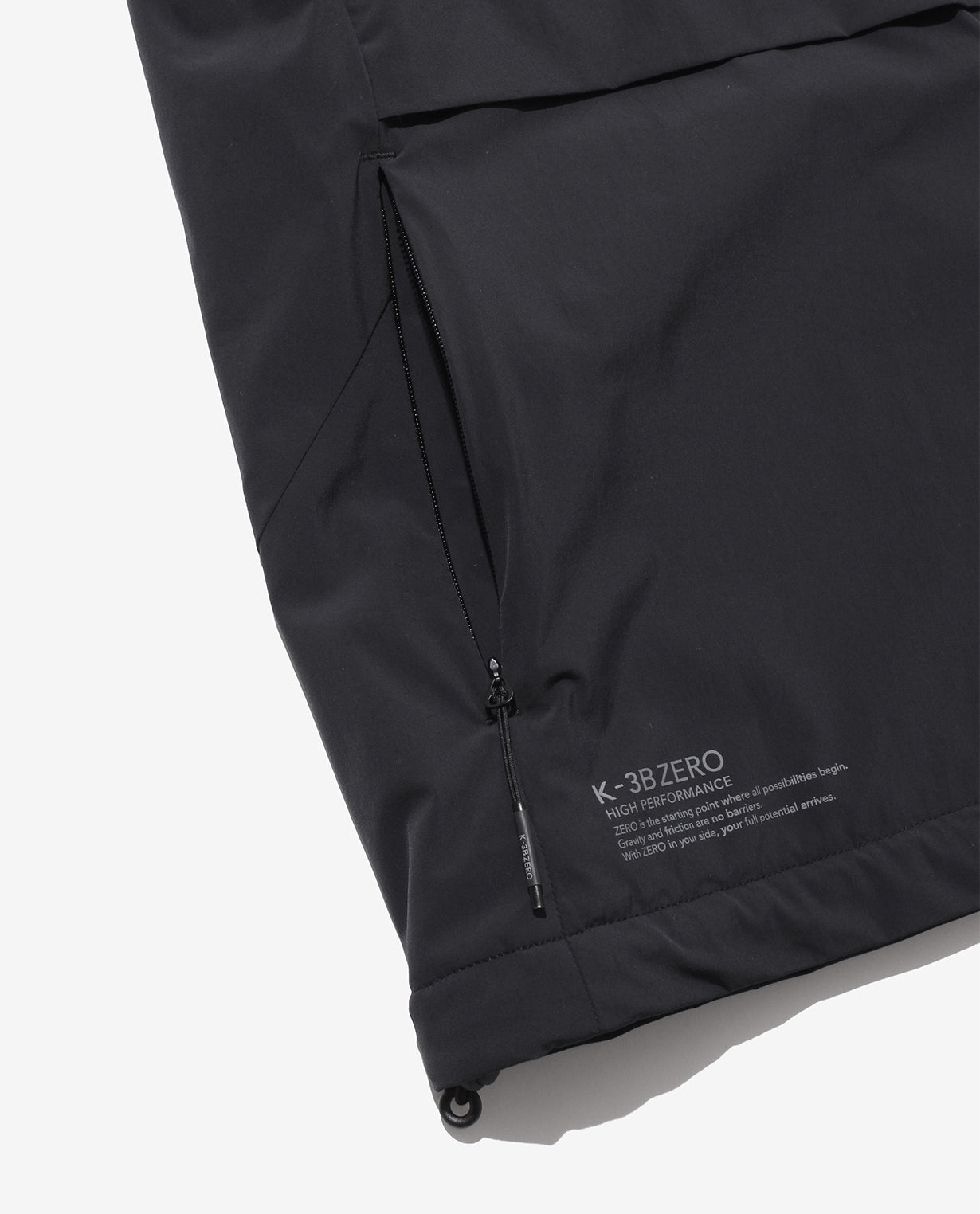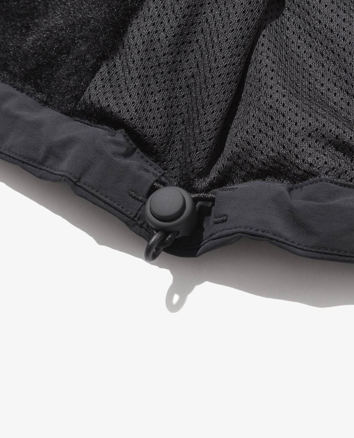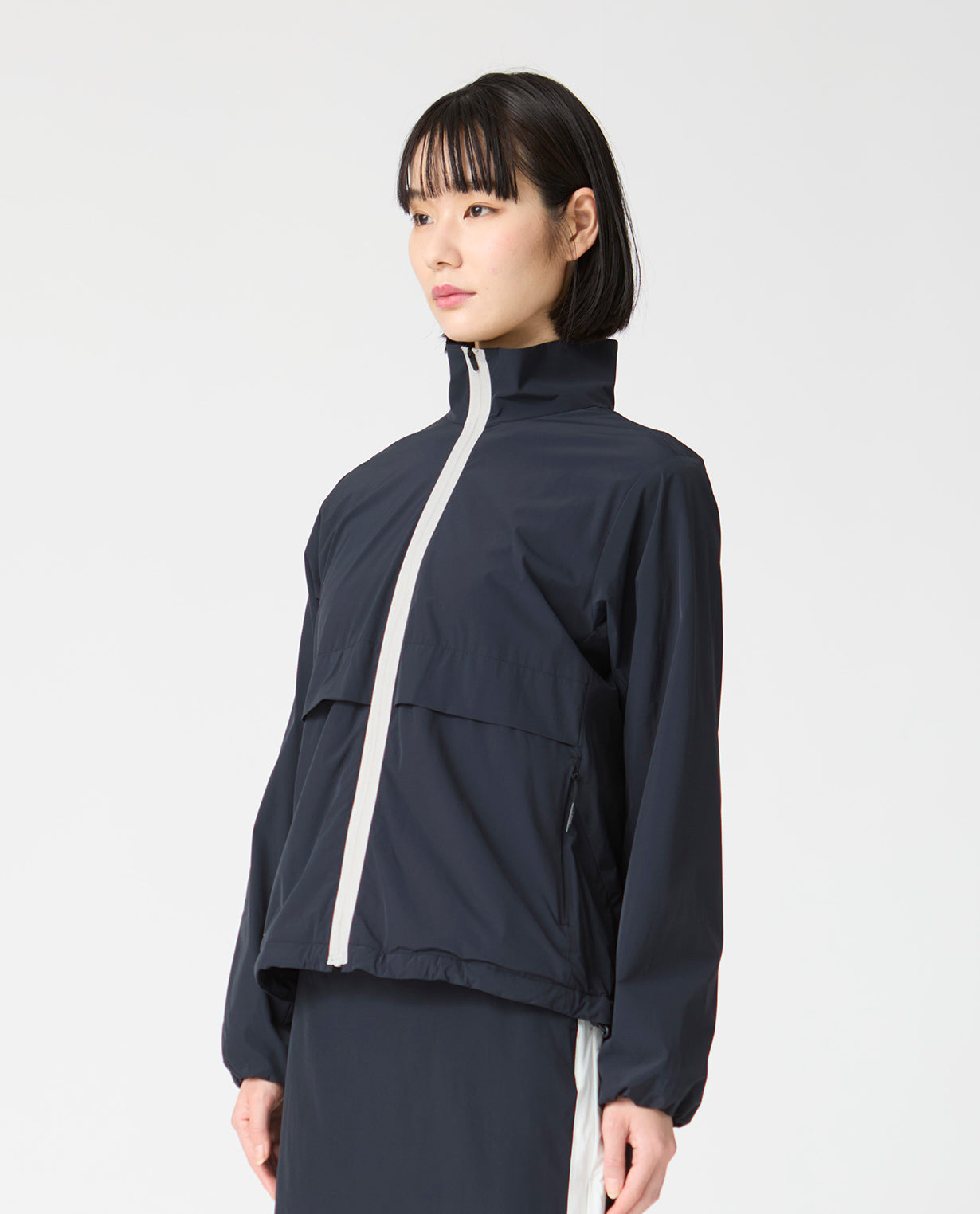 裏地には「OCTA(オクタ)®CPCP®を採用しています。オクタとは、帝人フロンティアが開発した高機能素材で、表面に8つの突起があり中心が空洞となった特殊な糸のこと。軽量で空気をたくさん含む構造になっています。そのオクタをメッシュ生地に編み込んだのがOCTA®CPCP®。片面は平滑なメッシュ・もう片面はふわふわの起毛パイル状で、中綿と裏地を一体化したようなテキスタイルです。高い保温性と吸湿速乾性・通気性を誇りながら非常に軽量なので、秋冬のアクティビティに最適です。■ デザインミニマルなデザインで一見すると防寒着とは思えない、軽量インサレーションジャケット。暖かいのに着膨れして見えないのが魅力です。裏地に高機能素材 OCTA®CPCP®を採用し、パーツによって起毛面とメッシュ面を使い分けることでより快適な着心地を実現。前後の身頃や外袖は起毛面が身体に当たるのでふんわりと柔らかく、脇や袖下は滑りのよいメッシュ面にしてあるので、保温性能を保ちながらインナーとの摩擦が起こりにくい設計になっています。前身頃の切り替え部分はベンチレーション機構になっていて、衣服内のムレを軽減。袖口はシャーリングのゴムを内側に隠し、カジュアル感を抑えています。腰ポケットの袋布も起毛になっているので、ハンドウォーマーがわりにも。スッと美しく立ち上がるスタンドカラーや配色のフロントファスナーがアクセントとなり、ミニマルなフォルムの中に機能美を感じさせます。体温調整が求められる季節の変わり目にも最適な高機能のブルゾンは、比較的にコンパクトな設計なのでゆったりしたコートの下ならミドラーとしても着用可能。軽量でストレスフリーな着心地かつ洗練されたルックスで、タウンユースからアクティブシーンまで幅広く活躍します。
