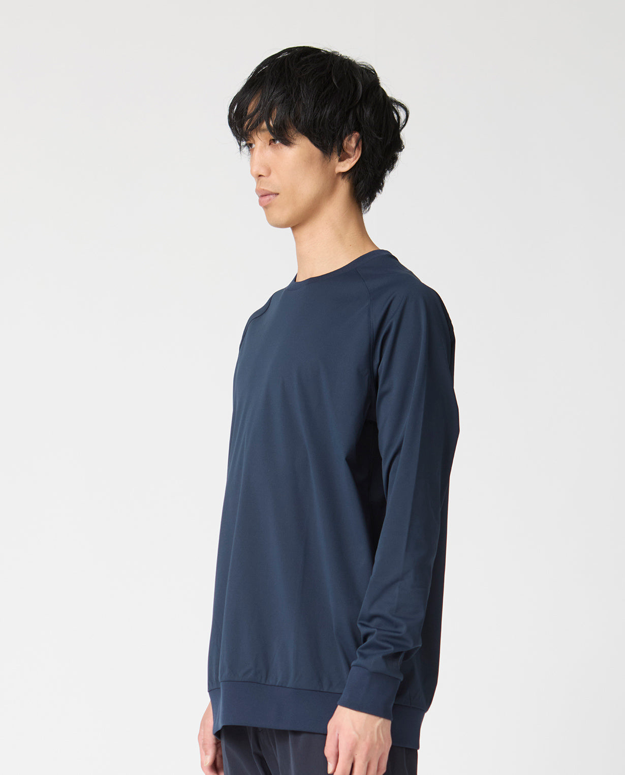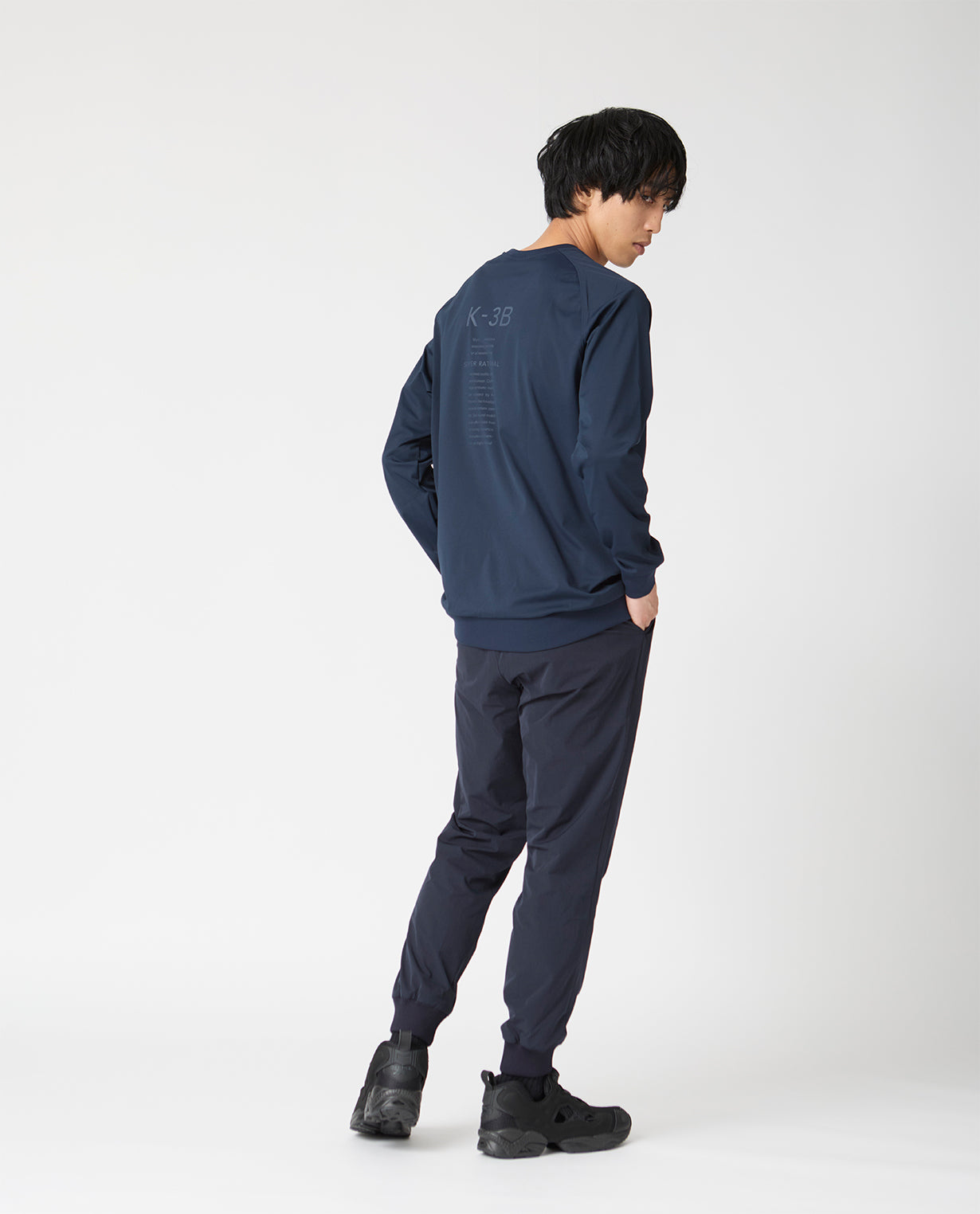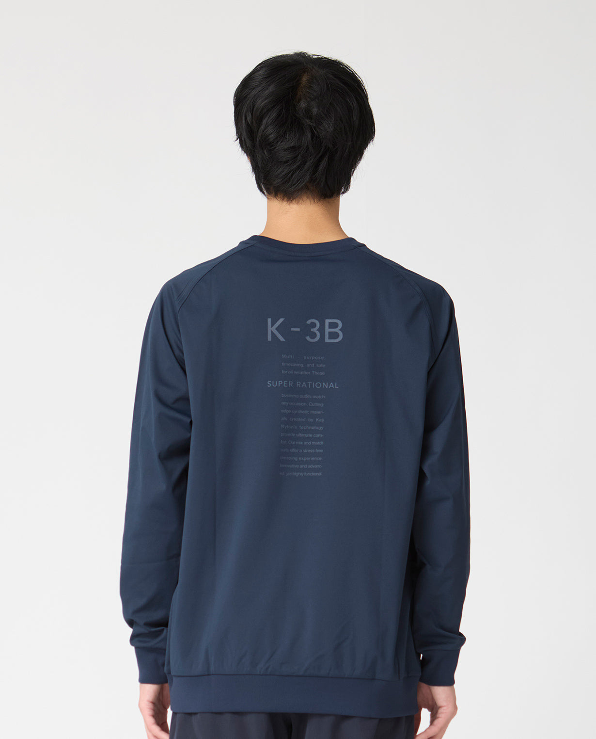 ■ 素材北陸発のテキスタイルブランド「KAJIF(カジフ)」のスムース生地を使用。ポリエステル100%の高密度ニットで、布帛のようなハリ感を持ちつつ、滑らかで快適な肌触りです。吸水速乾性に優れ、汗をかいてもすぐ乾き、シワになりにくくお手入れも簡単。耐久性・耐摩耗性が高く、通年で長く着用できる素材です。Tシャツとしての生地グレードを最高峰にまで高めることを目指して仕上げられています。紫外線も反射しやすく、日常の様々なシーンで快適に着用可能です。■ デザイン肩の動きがスムーズなラグランスリーブを採用。前面はシンプルでプリントなしのミニマルデザインに、背面には生地と同色のK-3Bオリジナルグラフィックプリントを配置。さりげなくも存在感を出し、立体感のあるハリ感の生地と相まって、シンプルながら上品で洗練された印象に仕上がっています。■ スタイリングシーンを問わず活躍するデザインで、デイリーにはジーンズやジョガーパンツと合わせて背面プリントをさりげなく見せるスタイルがおすすめ。ジャケットやパーカーのインナーとしても収まりが良く、長袖ならではの快適な着心地で季節を問わず着用可能です。K-3Bの機能性アイテムとの重ね着も相性抜群です。