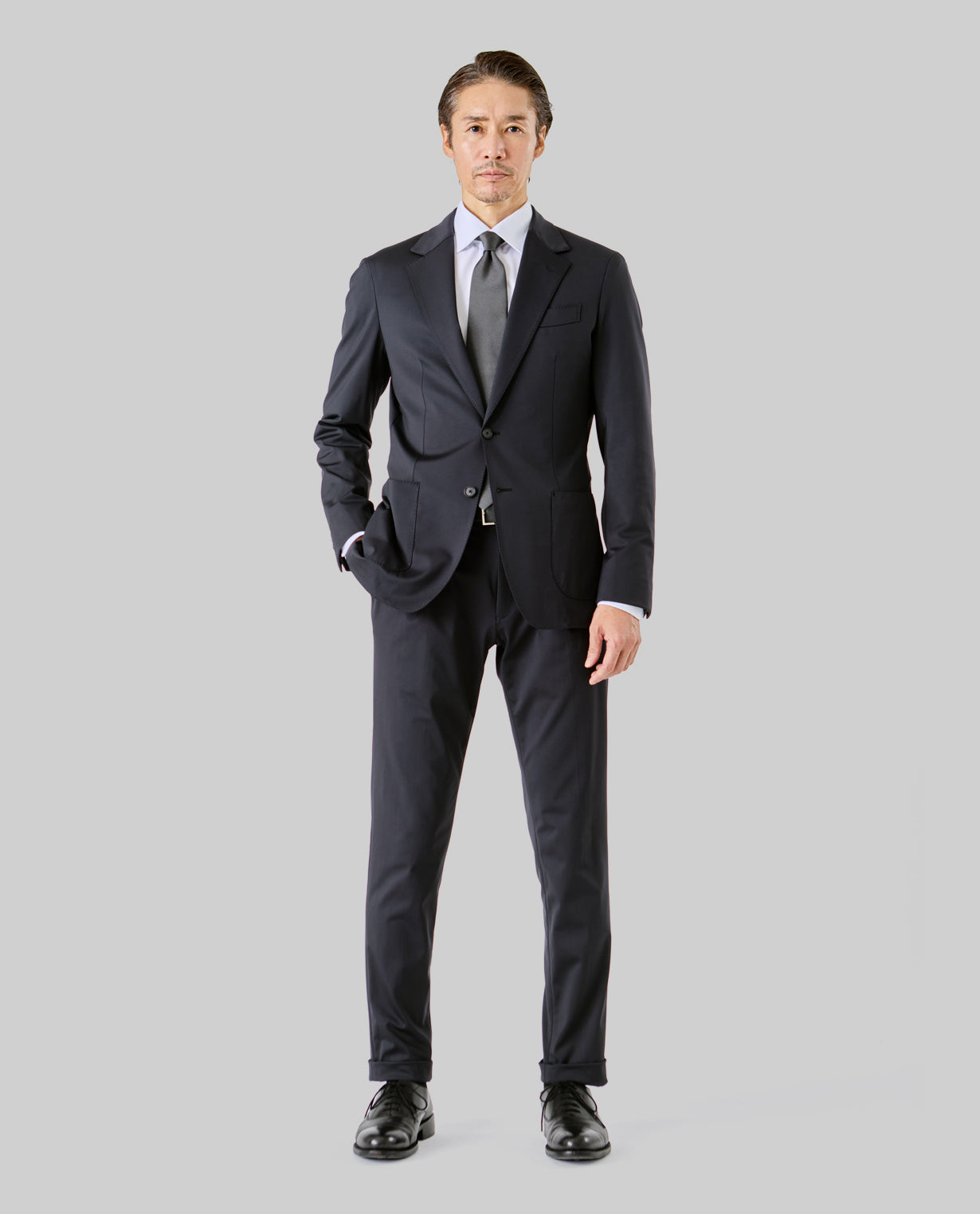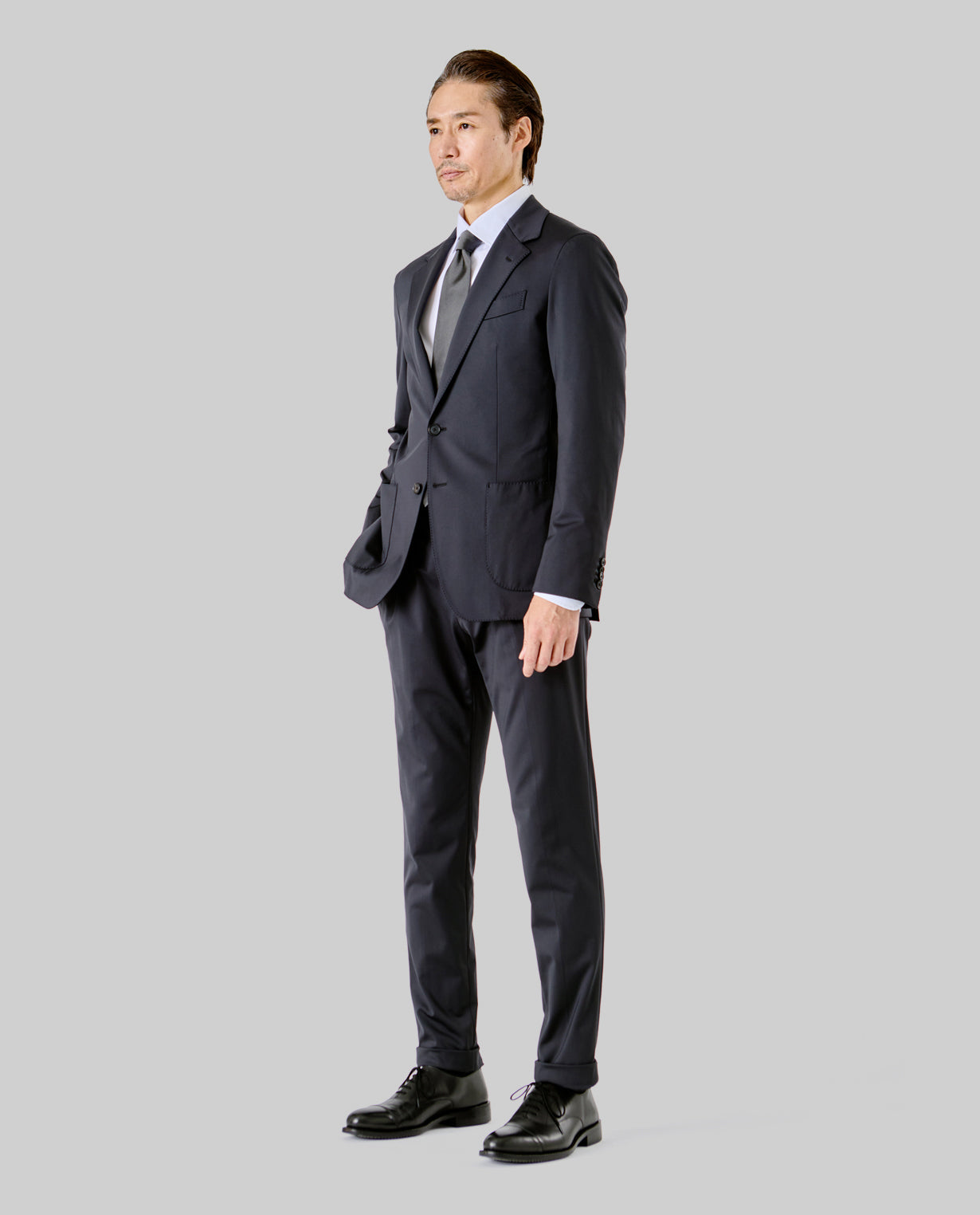 ■ コンセプト009_N ジャケットとのセットアップに最適な、王道のドレスドパンツ。あらゆる公式のビジネスシーンに対応する、クラシックの基本をすべて盛り込んだディテールと美しいテーパードライン。アルチザンが仕立てたような品質とナイロン素材の高度な機能性を併せ持った、新時代のラグジュアリーウェアです。■ 素材と縫製この「N生地」は、K-3Bを代表する高品位のニット素材。4WAYハイパワー・ストレッチでどんな動きも妨げず、キックバック性も良好です。40Gの高密度ダブルニットで、肉眼では編み目がわからないほどのキメの細かさと滑らかさ、上品な微光沢と程よいハリ感が特徴です。型崩れが少なくシワもできにくいうえ撥水速乾性も兼ね備え、毎日でも着ていたくなるほどの心地よさが評価されています。縫製は、日本におけるテーラードスーツ製造の名門「東和プラム」が担当。合繊ニット素材では難しい構築的な立体感や衿とラペルのシャープな返りを完璧に表現、着やすさと美しさの両立を実現しています。東和プラムの長い歴史の中で今回初めて、合繊100%のストレッチ素材を使ったスーツを開発していただきました。■ デザインと仕様余分な装飾のないクラシカルなデザインでありながら、身体の動きにどこまでもついてくるダブルニット「N生地」の特性により、ストレスとは無縁の快適な履き心地を叶えます。K-3Bパンツの特徴である右脇のファスナー付きコインポケットも装備されていますが、腰ポケットの下に隠れて目立たない付け方となっています。心地よい着用感のためウエスト両サイドにゴムシャーリングを入れ、腰回りはゆとりのあるサイズ感に設定。フロントは二つボタンとカギホック付きで、内側のテングと呼ばれるパーツによってすっきりとお腹を押さえます。ウエストサイズのお直しも可能な構造、股ズレや縫い目のほつれを防ぐシックなど、クラシックパンツの勘所が盛り込まれています。この製品はお客様に最適な丈でご着用いただけるよう、裾フリー仕上げとなっています。裾上げされる場合は、K-3Bディレクター干場義雅氏推奨の3.5cm幅ダブル仕上げをおすすめします。■ モデル着用画像183cm 2(L)サイズ※ 裾の仕上げについて裾はフリー仕上げとなっております。試着なしには適切なサイズを決めることが難しいため、ご購入後、ご試着のうえお近くのお直し店にてご調整をお願いいたします。恐れ入りますが何卒ご理解くださいますようお願い申し上げます。
