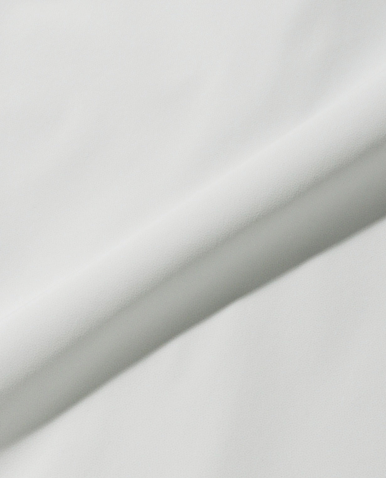 ■ 素材R生地は、経糸・緯糸ともにポリウレタン混の糸を使用した4WAYストレッチ素材。フルダル糸によるマットでフラットな質感と、パウダータッチの柔らかな手触りが特徴です。全方向に伸縮することで、スポーツシーンにも対応する軽量かつ耐久性に優れた布帛(ふはく)生地に仕上げています。今回はこのR生地に、別素材のニット生地と透湿防水フィルムをボンディング加工した3層構造のRB生地を採用。外側からの水の侵入を防ぎながら、内側の湿気を外に逃がす高い透湿防水性を実現しました。従来のR生地では対応しづらかった肌寒い季節でも、動きやすさはそのままに、雨風を防ぎながら快適な暖かさを保ちます。