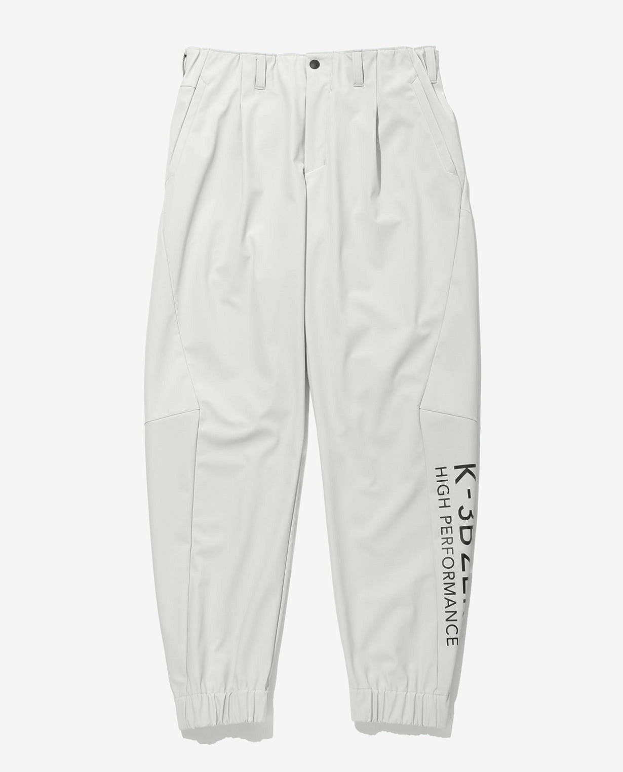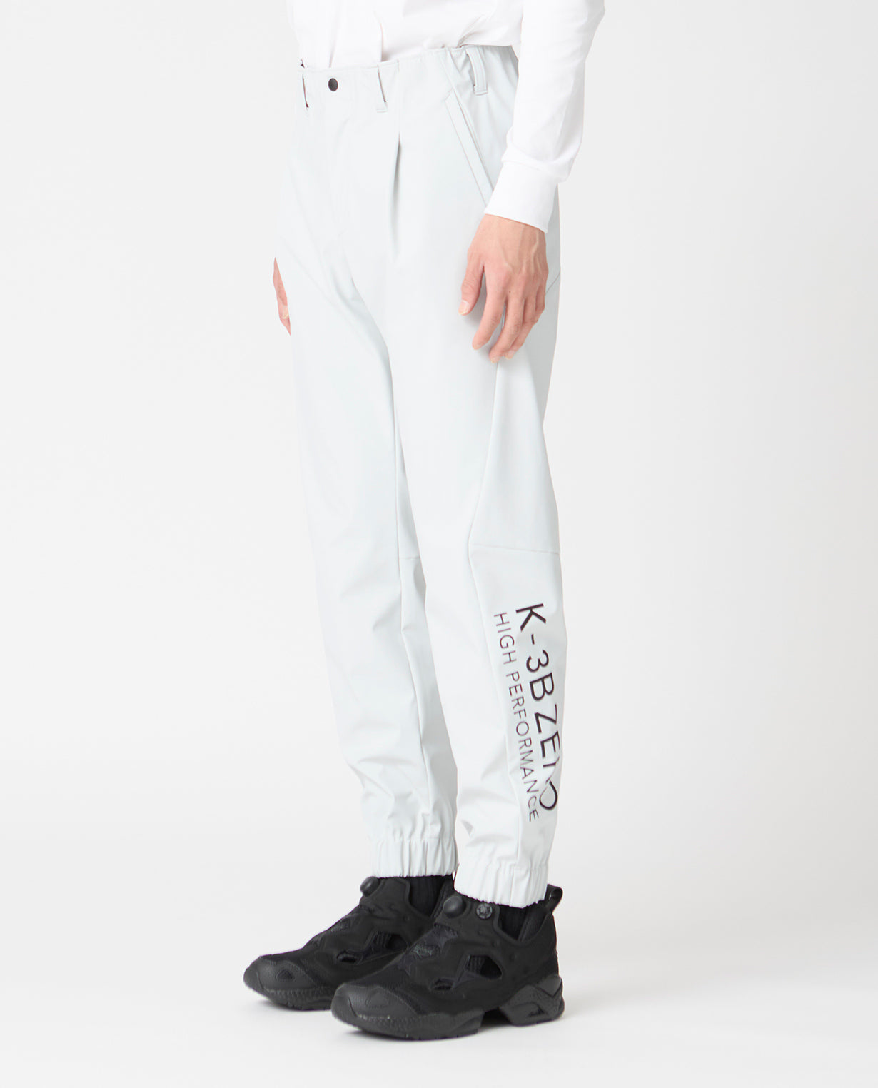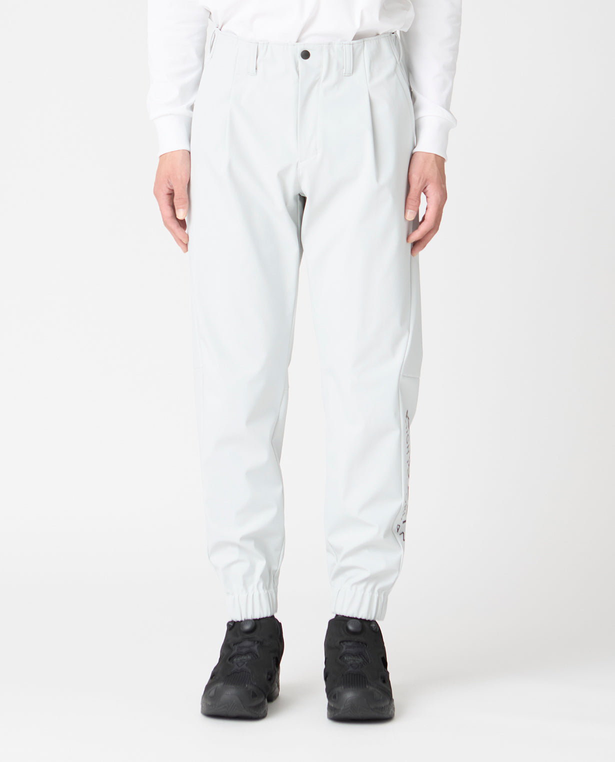 ■ デザインゴルフのアドレス姿勢が美しく見えるよう、カットラインを計算して設計。ウエストにはやや太めのウーリーゴムを採用し、最小限のステッチで仕上げることで、スッキリとした印象を演出しています。裾にもゴムを配することで、ジョガーパンツのようなスポーティさと、タウンユースに馴染む洗練されたシルエットを両立。ポケット部分は縫い代を内側にはめ込み、デザイン性と機能性を両立した仕様に。後ろポケットは斜めにカットされており、手を差し込みやすく実用的です。さらに、後ろに配置されたDカンはポケット内に収納可能で、機能性と美観の両面に配慮したディテールとなっています。■ スタイリング同素材を使用した新作「0_673_RB アクティブストレッチボンディング セットアップフルジップパーカ」とのセットアップスタイルはもちろん、秋冬シーズンの機能性パンツとしても活躍。優れたストレッチ性と防風・防水性を兼ね備え、アクティブなシーンから日常まで幅広く対応します。