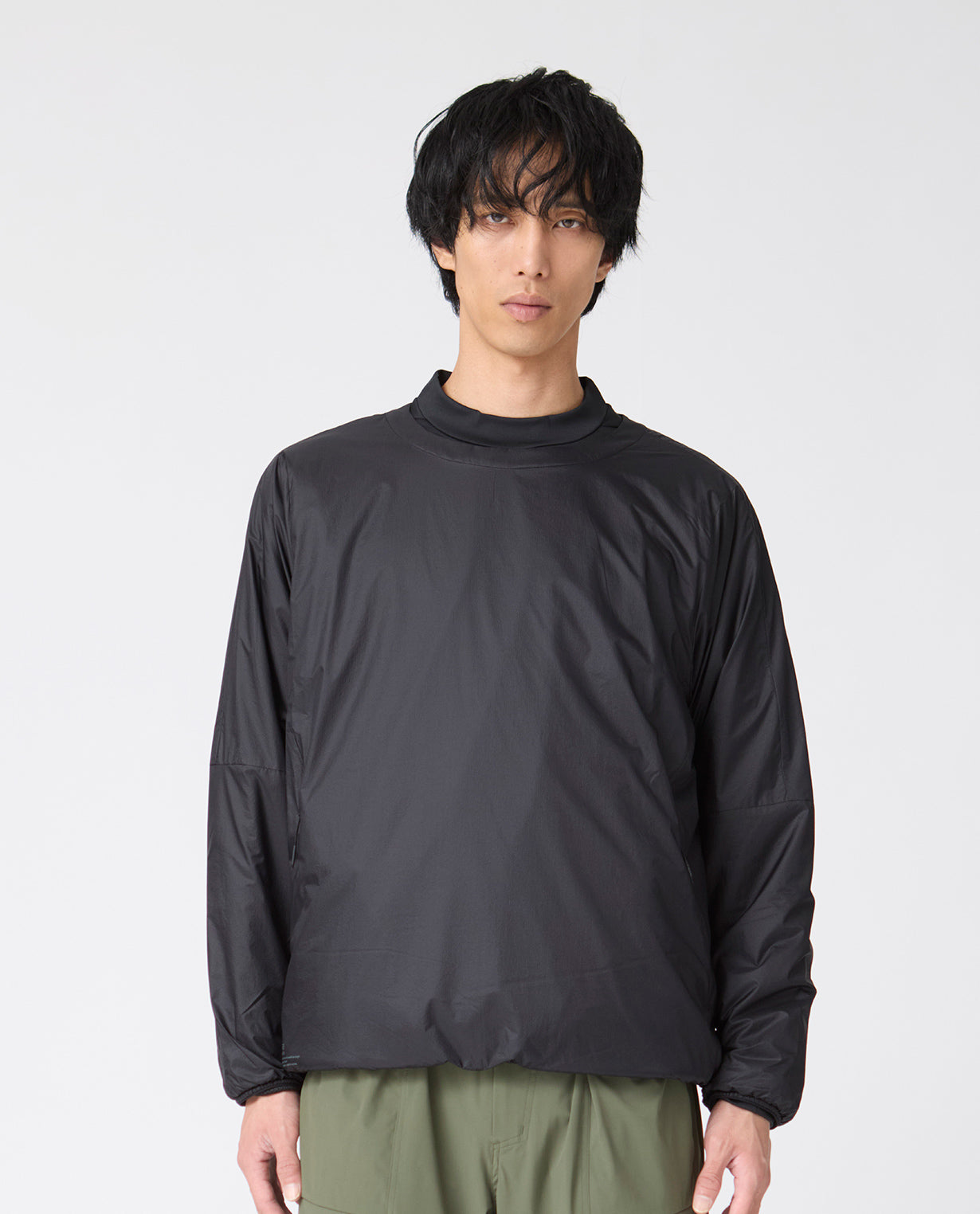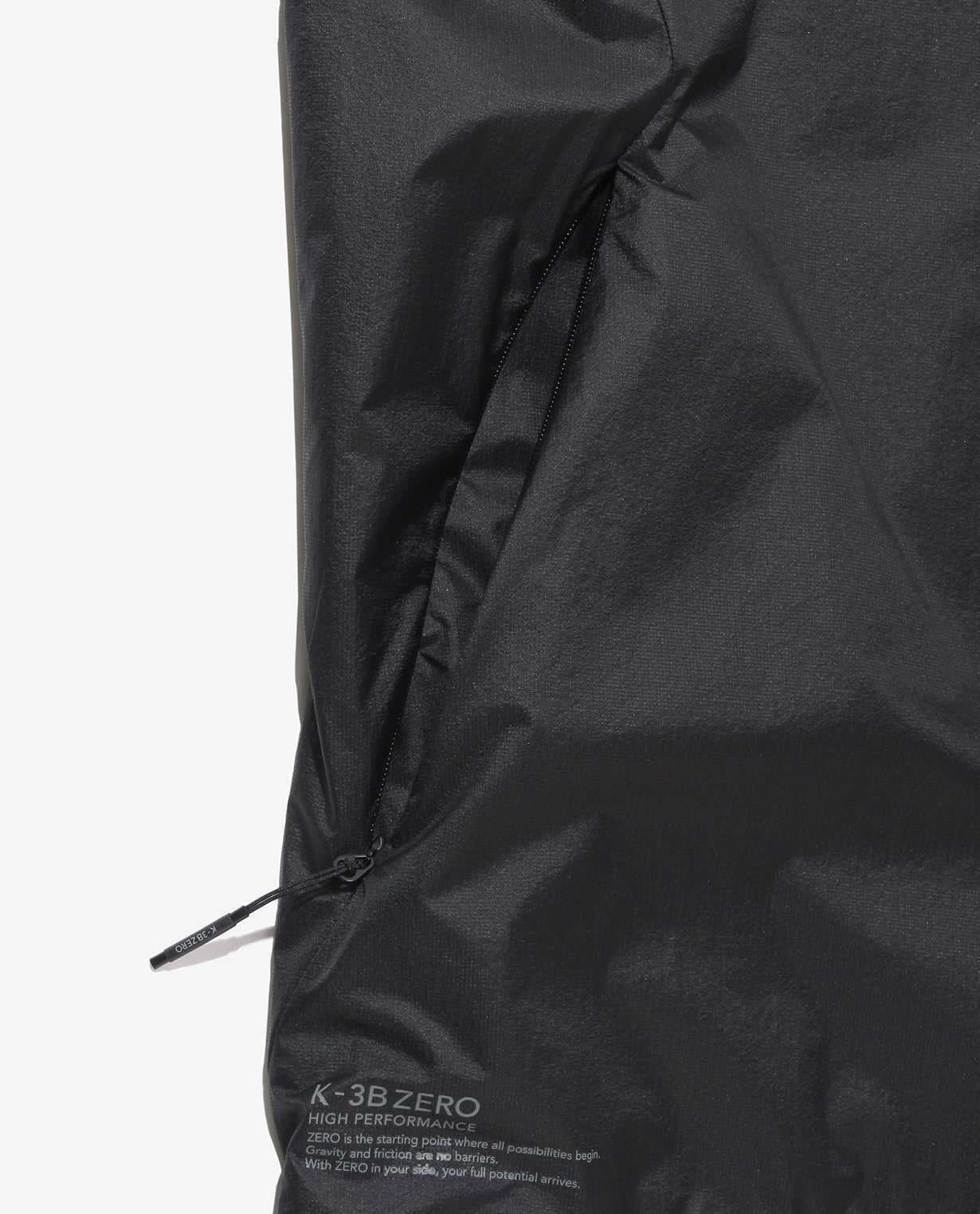 ■ 素材世界最軽量クラスの7d(デニール)のウーリー糸を使って織られた、羽根のように軽いF生地を採用。軽い雨を弾く撥水仕様で、家庭洗濯が可能。速乾性にも優れ、シワになりにくいのが特徴です。また、引き裂き強度の高いリップストップ組織で構成され、裏面には補強のコーティングを施しています。薄くて軽いにもかかわらず、強度と防風性能を両立した素材です。裏地には、多機能繊維「Octa® (オクタ®)」を使用。帝人フロンティアが開発した特殊な断面のポリエステル繊維で、アクティブインサレーション(動的保温着)に最適な高機能素材です。中空の糸に8つの突起を持つ断面構造によって、軽量性・保温性・断熱性・吸水性・速乾性に優れるため、低温下でも高い保温性を維持しつつ、通気性の良さでオーバーヒートを防止。脱ぎ着の必要がなく、着たままで快適な運動を続けることができます。■ デザイン超軽量素材と高機能裏地 Octa®(オクタ)を組み合わせた、アクティブインサレーションジャケット。ストレッチ性に優れ、身体の動きにしなやかに追従。軽さを感じさせない保温性で、快適な着心地を実現します。襟の後部には伸縮性の高い素材を配置し、着脱時のストレスを軽減。袖口裏にはメッシュ素材を採用し、肌離れの良さと速乾性を確保しています。背面にはベンチレーション機能を備えたフラップを設け、衣服内の熱を効果的に逃がして通気性を確保。さらに、背面のK-3Bロゴがシンプルなデザインの中にテクニカルなアクセントを添えています。ミニマルなデザインの中に、機能美とテクノロジーを凝縮した次世代のウォームジャケットです。■ スタイリング同じく Octa®を使用したカーゴジョガーパンツとセットアップでの着用がおすすめ。無駄のないミニマルデザインに、Octa®ならではの快適な保温性と通気性を備え、街からトレーニングシーンまでシームレスに対応します。出張やトラベルにも最適で、移動中も快適かつスマートに過ごせる機能性ウェアです。■ 同じ生地のアイテムを見るF生地 (MEN)■ ジャーナルの記事を見る「F生地」シリーズを徹底解説。世界最軽量クラスのリップストップ・ナイロン生地