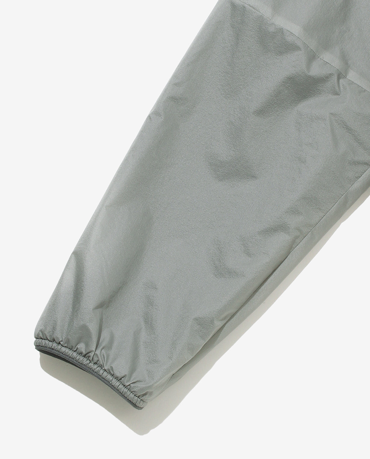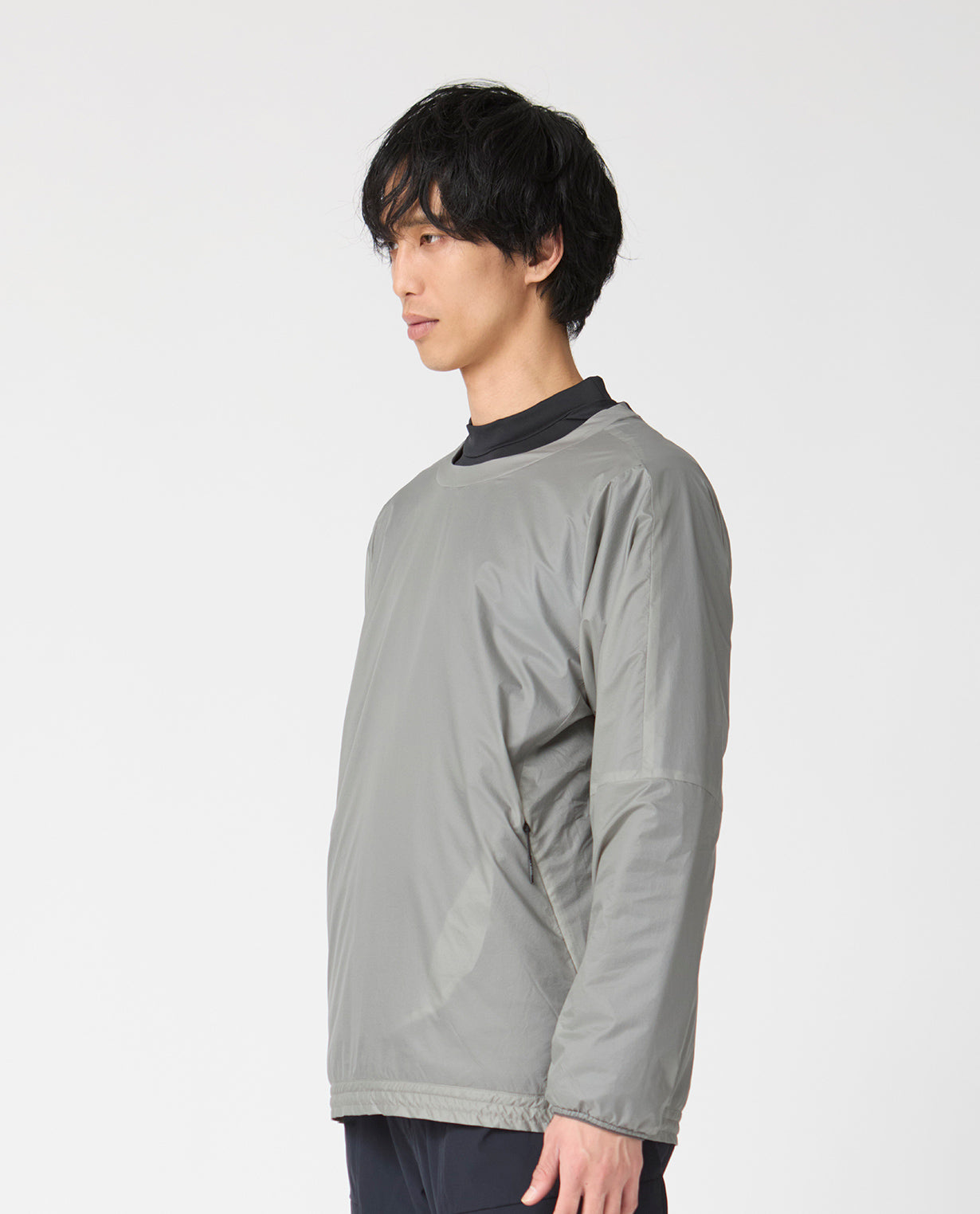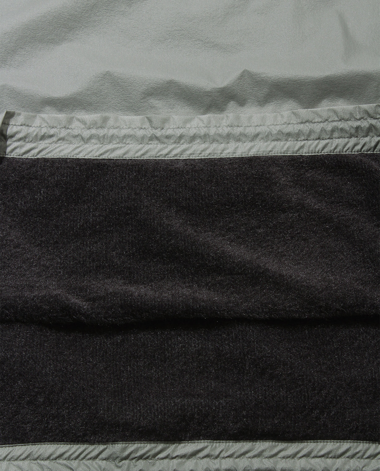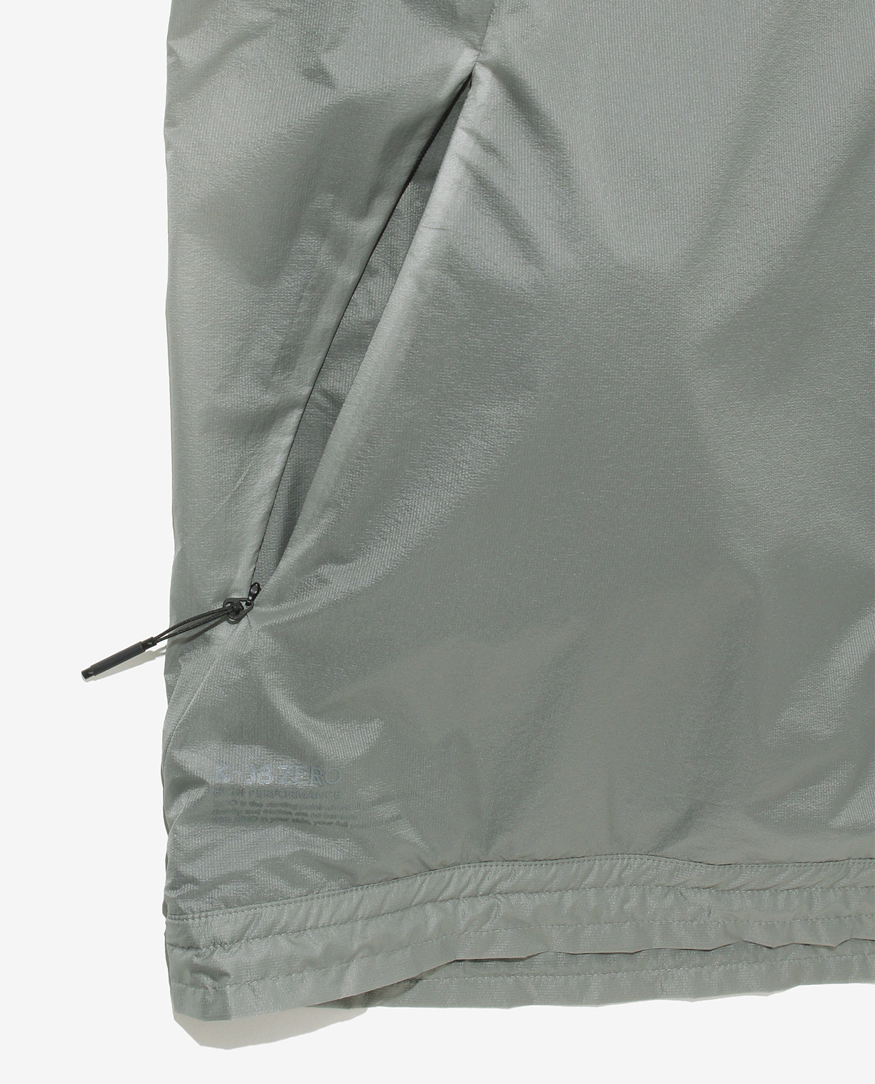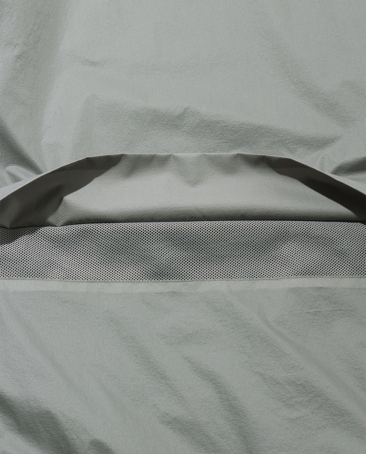 ■ 素材世界最軽量クラスの7d(デニール)のウーリー糸を使って織られた、羽根のように軽いF生地を採用。軽い雨を弾く撥水仕様で、家庭洗濯が可能。速乾性にも優れ、シワになりにくいのが特徴です。また、引き裂き強度の高いリップストップ組織で構成され、裏面には補強のコーティングを施しています。薄くて軽いにもかかわらず、強度と防風性能を両立した素材です。裏地には、多機能繊維「Octa® (オクタ®)」を使用。帝人フロンティアが開発した特殊な断面のポリエステル繊維で、アクティブインサレーション(動的保温着)に最適な高機能素材です。中空の糸に8つの突起を持つ断面構造によって、軽量性・保温性・断熱性・吸水性・速乾性に優れるため、低温下でも高い保温性を維持しつつ、通気性の良さでオーバーヒートを防止。脱ぎ着の必要がなく、着たままで快適な運動を続けることができます。■ デザイン超軽量素材と高機能裏地 Octa®(オクタ)を組み合わせた、アクティブインサレーションジャケット。ストレッチ性に優れ、身体の動きにしなやかに追従。軽さを感じさせない保温性で、快適な着心地を実現します。襟の後部には伸縮性の高い素材を配置し、着脱時のストレスを軽減。袖口裏にはメッシュ素材を採用し、肌離れの良さと速乾性を確保しています。背面にはベンチレーション機能を備えたフラップを設け、衣服内の熱を効果的に逃がして通気性を確保。さらに、背面のK-3Bロゴがシンプルなデザインの中にテクニカルなアクセントを添えています。ミニマルなデザインの中に、機能美とテクノロジーを凝縮した次世代のウォームジャケットです。■ スタイリング同じく Octa®を使用したカーゴジョガーパンツとセットアップでの着用がおすすめ。無駄のないミニマルデザインに、Octa®ならではの快適な保温性と通気性を備え、街からトレーニングシーンまでシームレスに対応します。出張やトラベルにも最適で、移動中も快適かつスマートに過ごせる機能性ウェアです。■ 同じ生地のアイテムを見るF生地 (MEN)■ ジャーナルの記事を見る「F生地」シリーズを徹底解説。世界最軽量クラスのリップストップ・ナイロン生地