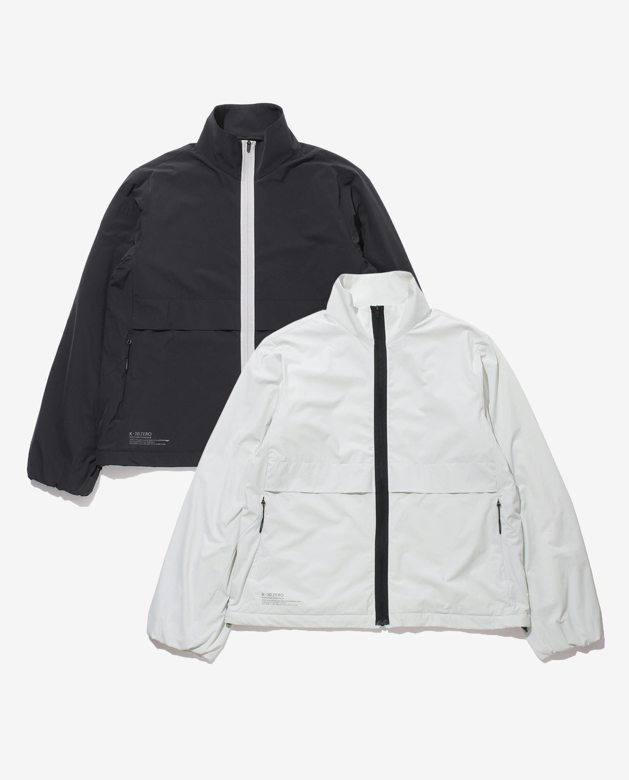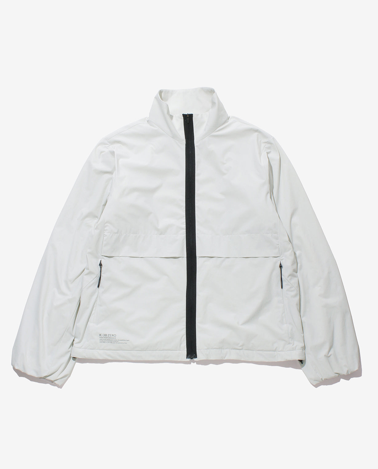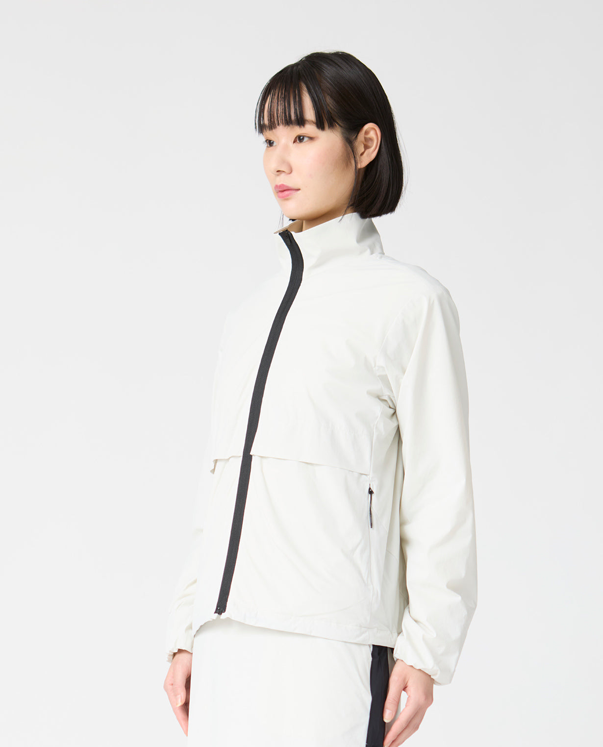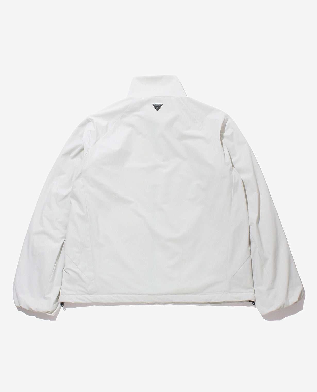 裏地には「OCTA(オクタ)®CPCP®を採用しています。オクタとは、帝人フロンティアが開発した高機能素材で、表面に8つの突起があり中心が空洞となった特殊な糸のこと。軽量で空気をたくさん含む構造になっています。そのオクタをメッシュ生地に編み込んだのがOCTA®CPCP®。片面は平滑なメッシュ・もう片面はふわふわの起毛パイル状で、中綿と裏地を一体化したようなテキスタイルです。高い保温性と吸湿速乾性・通気性を誇りながら非常に軽量なので、秋冬のアクティビティに最適です。■ デザインミニマルなデザインで一見すると防寒着とは思えない、軽量インサレーションジャケット。暖かいのに着膨れして見えないのが魅力です。裏地に高機能素材 OCTA®CPCP®を採用し、パーツによって起毛面とメッシュ面を使い分けることでより快適な着心地を実現。前後の身頃や外袖は起毛面が身体に当たるのでふんわりと柔らかく、脇や袖下は滑りのよいメッシュ面にしてあるので、保温性能を保ちながらインナーとの摩擦が起こりにくい設計になっています。前身頃の切り替え部分はベンチレーション機構になっていて、衣服内のムレを軽減。袖口はシャーリングのゴムを内側に隠し、カジュアル感を抑えています。腰ポケットの袋布も起毛になっているので、ハンドウォーマーがわりにも。スッと美しく立ち上がるスタンドカラーや配色のフロントファスナーがアクセントとなり、ミニマルなフォルムの中に機能美を感じさせます。体温調整が求められる季節の変わり目にも最適な高機能のブルゾンは、比較的にコンパクトな設計なのでゆったりしたコートの下ならミドラーとしても着用可能。軽量でストレスフリーな着心地かつ洗練されたルックスで、タウンユースからアクティブシーンまで幅広く活躍します。