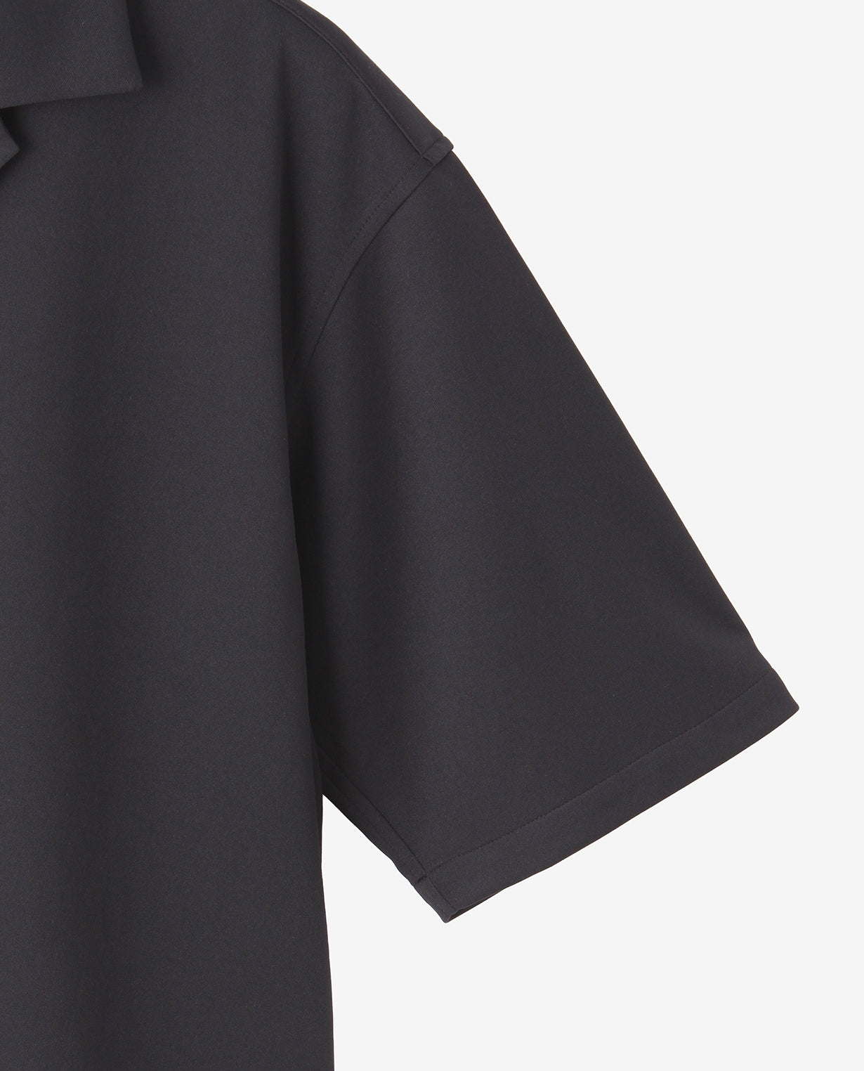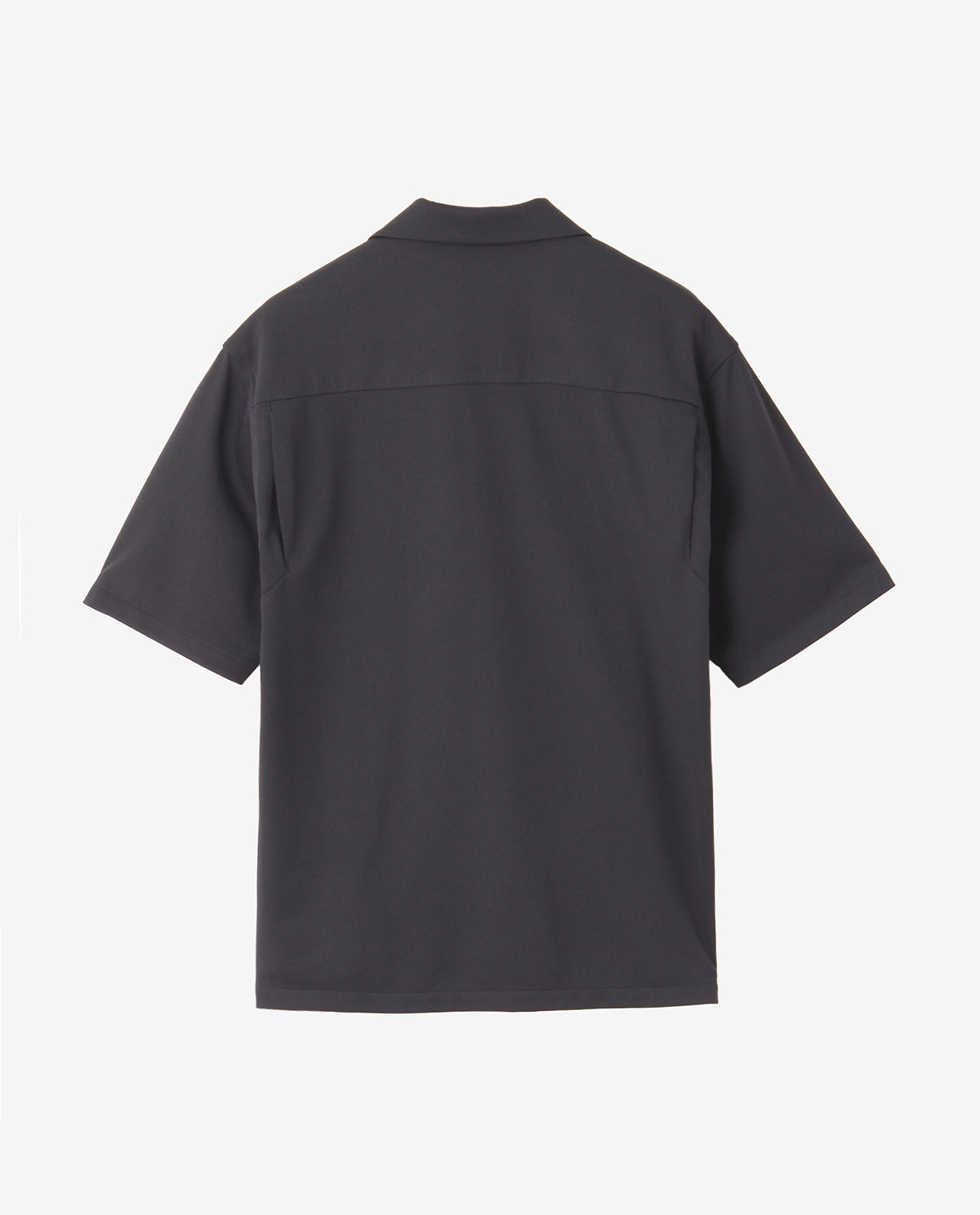 表と裏面の組織が違う、プレーティング生地になっており、肌面に和紙糸、表面にはポリエステル素材を使った2重組織になっています。和紙は近年スポーツ素材として人気があり、汗を吸って溜め込まずすぐ拡散する吸放湿性機能でドライ感が持続。摩擦も起きにくいため運動量の多いシーンの体の動きにもスムーズに対応します。蒸れにくく通気性も抜群で、かつカジナイロン独自技術を使い糸から作っているワシ素材は柔らかな肌触りで肌あたりも滑らかになっています。■ デザイン程よく抜け感のある開襟デザインに、K-3Bらしい機能性と洗練されたバランスを落とし込んだ半袖シャツ。首元は開きすぎない設計で、リラックス感がありながらも品の良さをキープしています。後ろ見頃にはにはベンチレーションを配置し、衣服内のムレを軽減。見た目には主張しすぎない位置と寸法に調整することで、快適性とデザイン性を両立しました。フロントボタンは配置バランスを見直し、第一ボタンをやや下げることで、着用時のVゾーンを美しく演出。肩幅・バストには適度なゆとりを持たせ、シルエットに余裕のあるオーバーサイズ設計。アクティブシーンからタウンユースまで対応する、軽快さと上品さを兼ね備えたK-3Bの開襟シャツです。