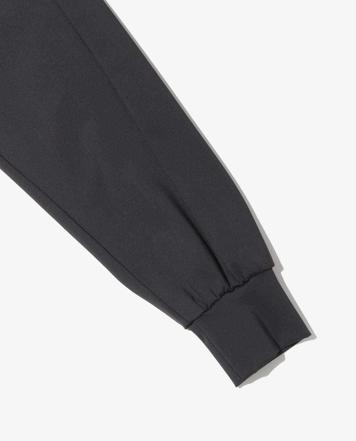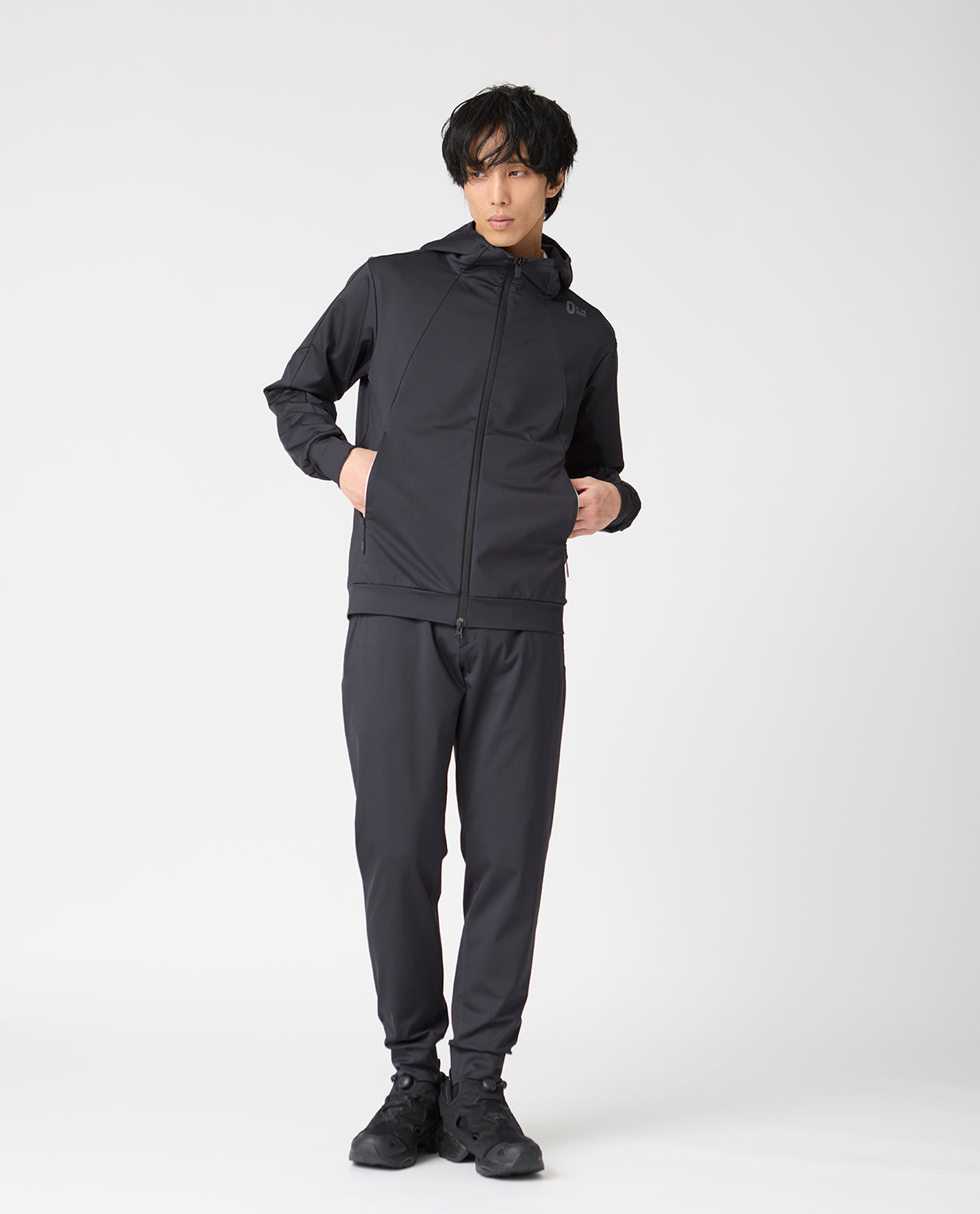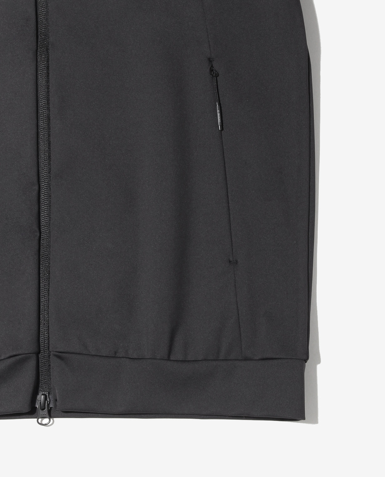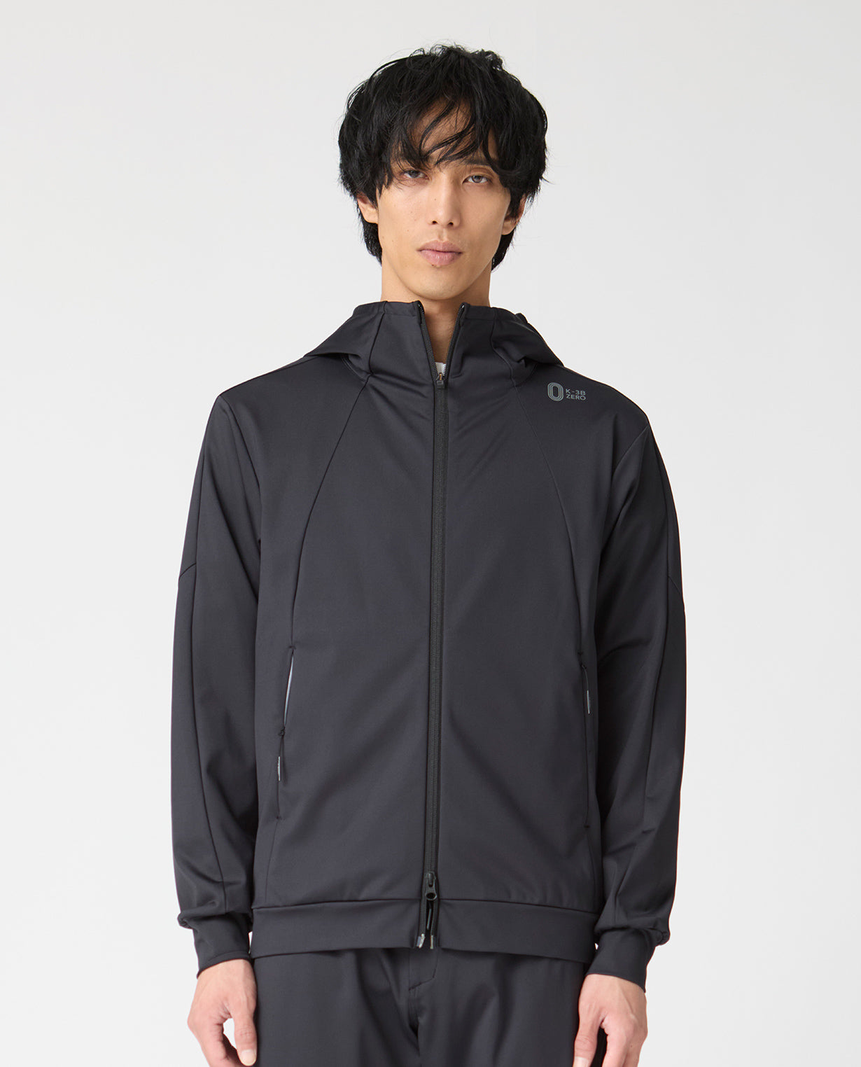無駄のないミニマルなデザインながら、身体の動きにしなやかに追従する設計で快適な着用感を実現。フロントにはダブルZIPを配し、機能性とデザイン性を両立。袖口と裾はテンションを抑えたリブ仕様で、クリーンな印象に仕上げています。