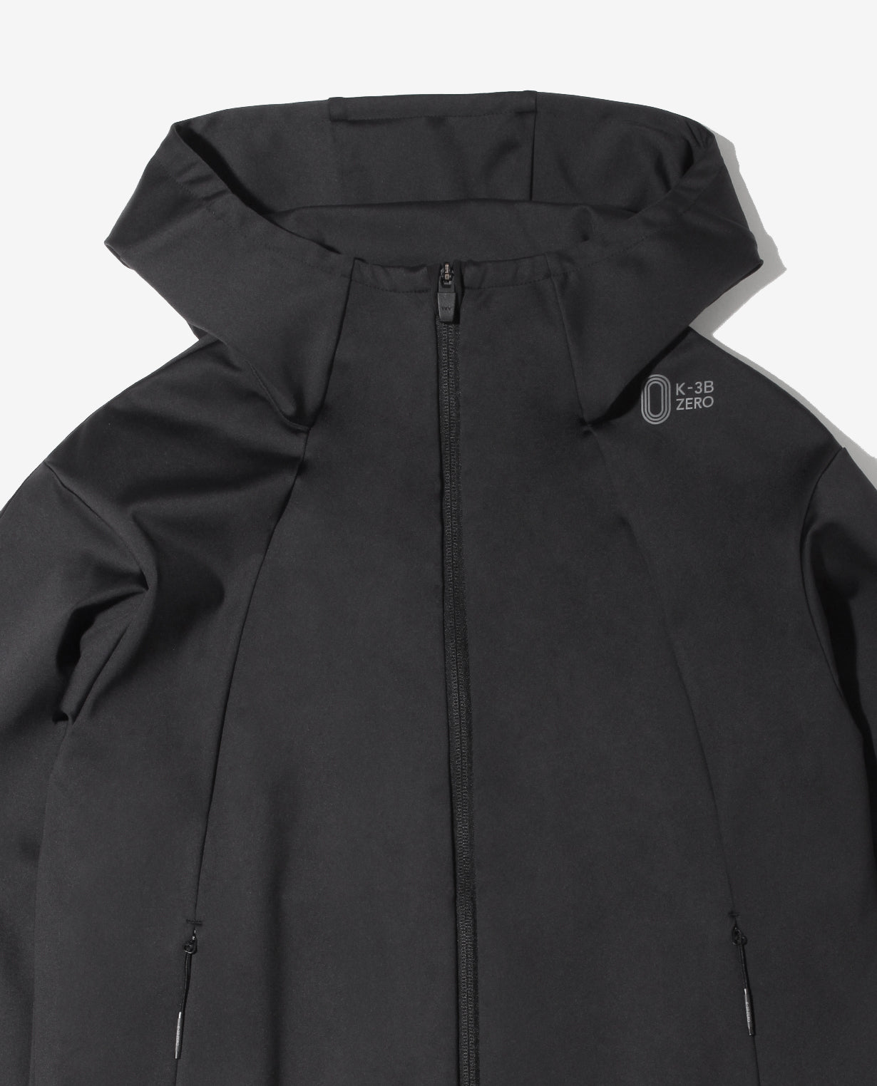 ミニマルなデザインと立体的なフォルムが際立つフーデッドジャケットは、同素材の0_175_Nとのセットアップでの着用がおすすめ。統一感のあるルックスとシャープなラインが際立ち、K-3Bらしい都会的なスタイルを演出します。