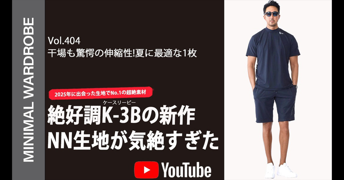 MINIMAL WARDROBEチャンネル第404回、「"K-3B NN生地新作" 干場がこの夏絶対に買う!K-3Bの最新素材は気絶必須間違いなし!」で、K-3B製品をご紹介いただきました。