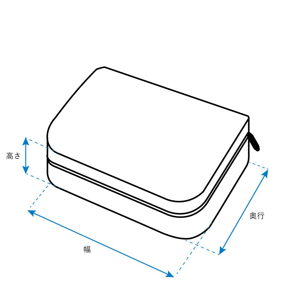 幅26cm×奥行18.5cm×高さ10cmのサイズ感はタオルや下着、靴下、インナーなどを入れて、バッグやキャリーケースの中で型崩れしたり折り曲がったりせずに収納するのに最適です。もちろんご自宅の収納ボックスやたんすでもお使いいただけます。