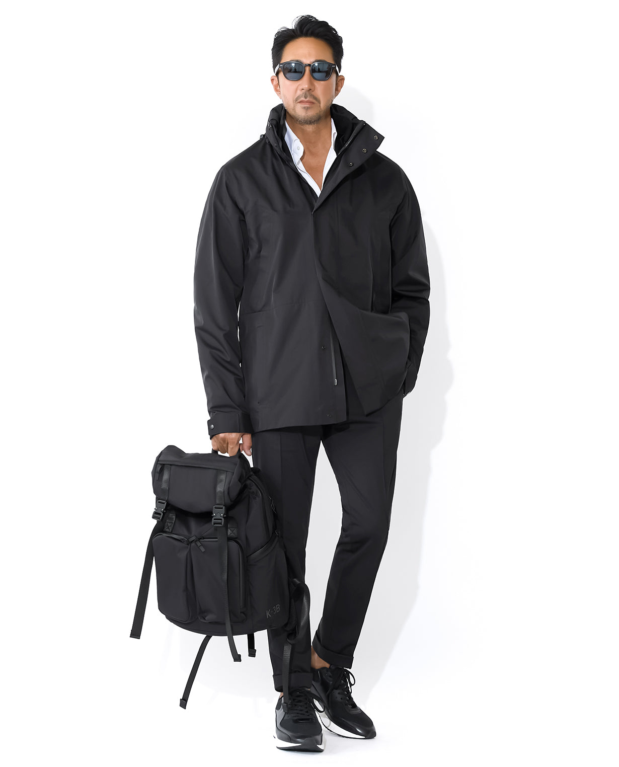 761_M3L アーバンレインシェル ステンカラーコート (ブラック)