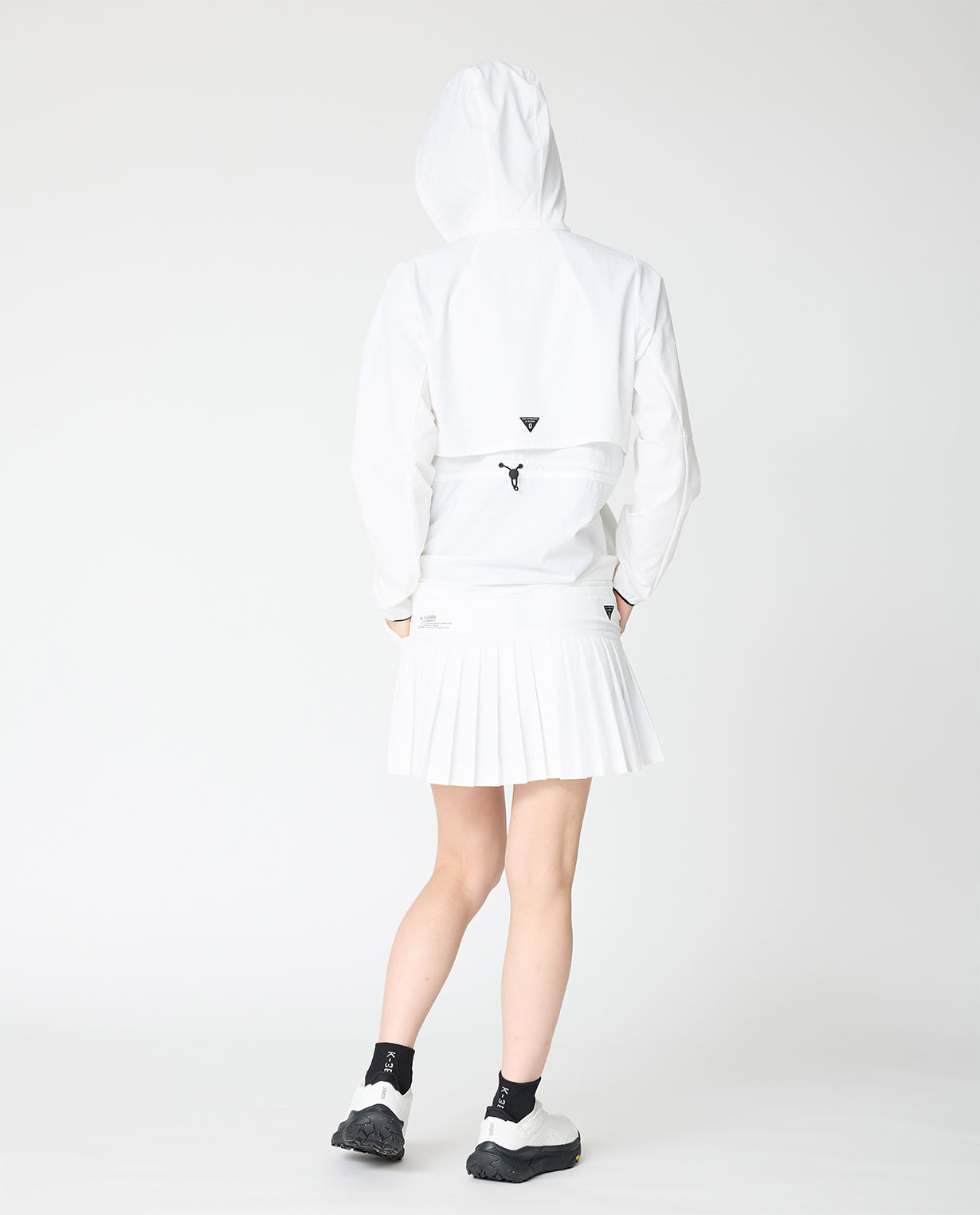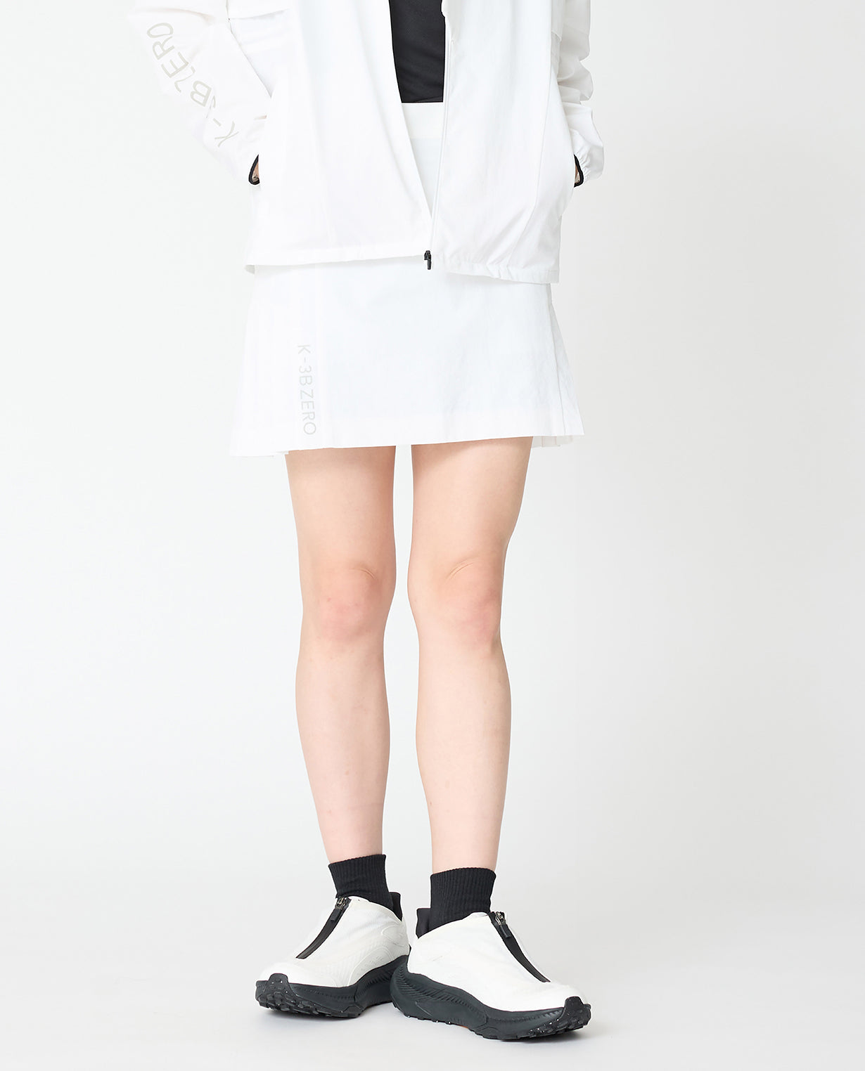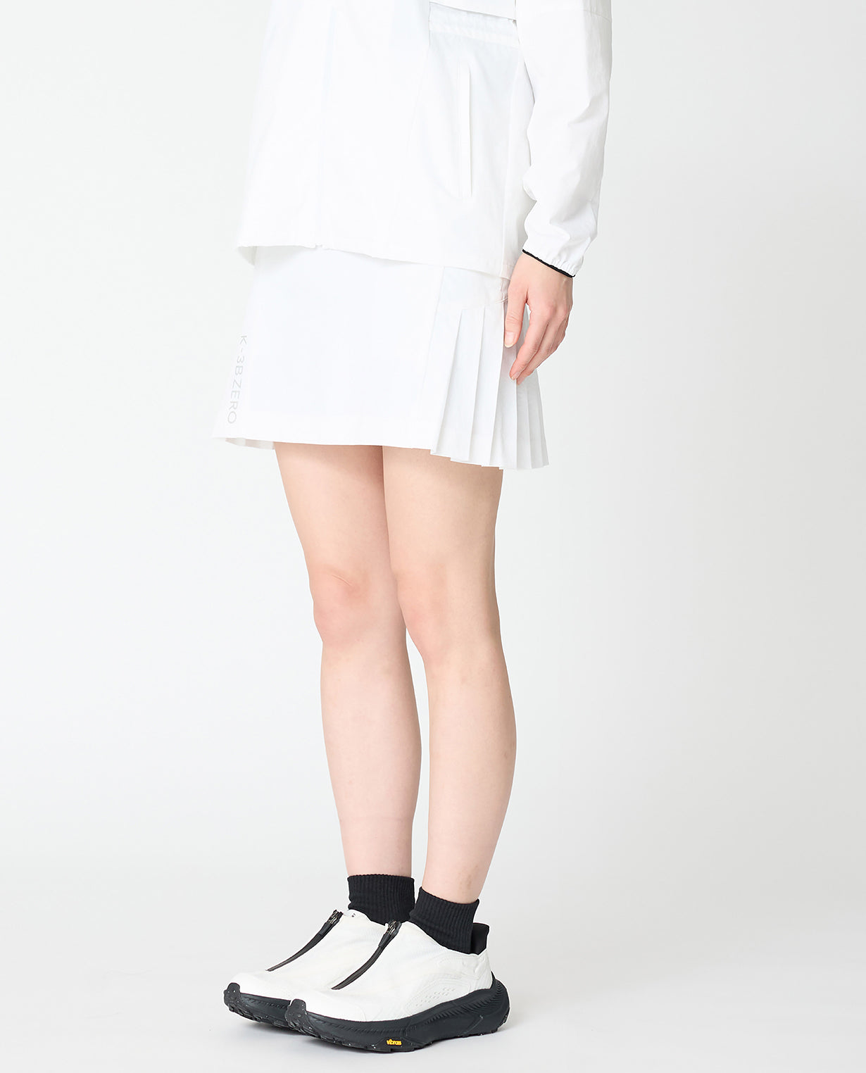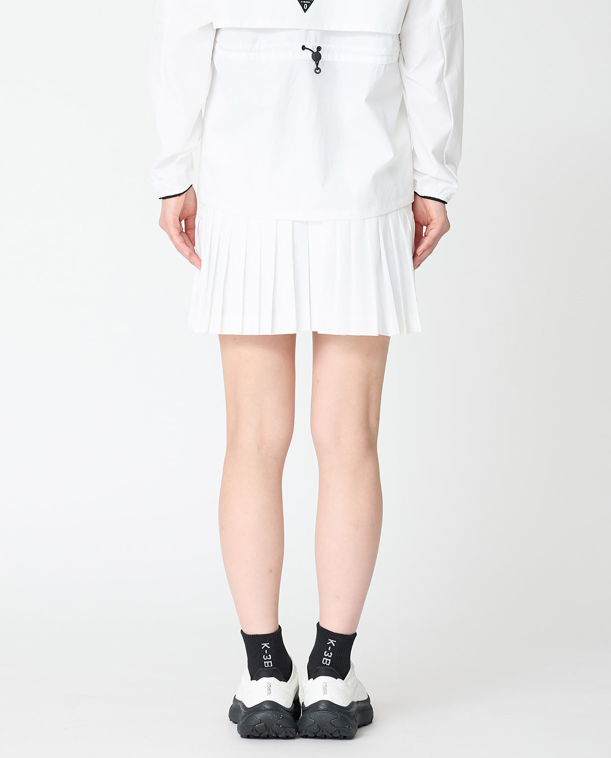 This above-the-knee skirt has a trendy "retro sports" feel and incorporates the details of a tennis skort. It is designed for a variety of occasions, including golf, tennis, and running, and the length is well-balanced when worn as an overskirt over leggings.