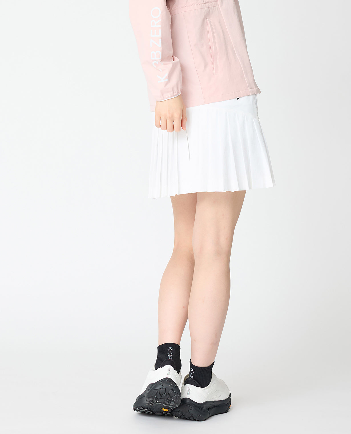 The heat-treated pleats keep the creases in place, giving a light and feminine impression. The upper part of the pleats is held down with a diagonal line to prevent them from spreading out more than necessary, so you can wear it actively without worrying about your leg movements.