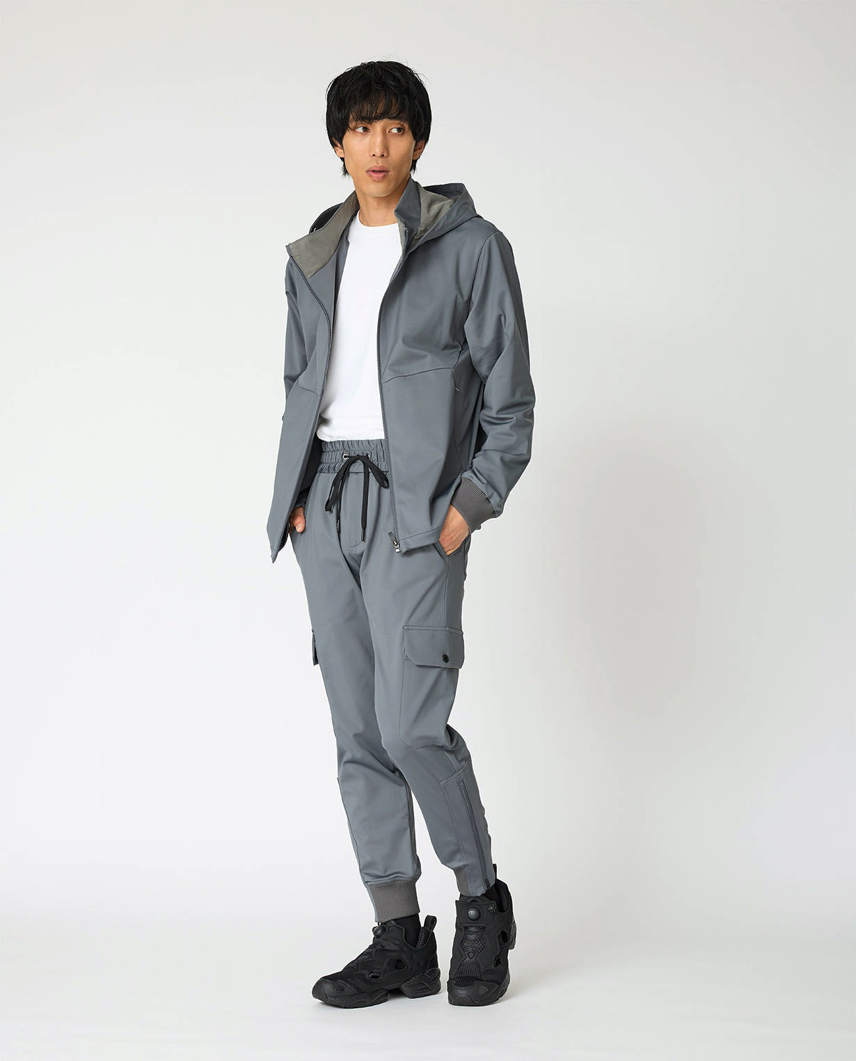 ■ 素材「24HR-WEARABLE(24時間着ていたい)」をコンセプトにした本シリーズには、石川県発のテキスタイルブランド「KAJIf(カジフ)」の生地を採用。ハイゲージダブルニットで編み上げられたN生地は、滑らかで柔らかい肌触りと、身体の動きにしなやかに追従するハイパワーストレッチ性が特徴です。マットで美しい表面は高密度ならでは。さらに、撥水加工も施されており、急な天候変化にも対応可能です。合成繊維の持つ機能性と取り扱いやすさを活かしながら、上質感を備えています。■ デザインK-3Bでも人気のカーゴパンツとジョガーパンツをいいとこどりでコンビネーションさせた新作パンツ。やや細身のシルエットでジョガーシルエットでもカジュアルになりすぎないデザインです。ジャストフィットなシルエット感でも、パワーストレッチの生地で着心地もよく、撥水性もあるので雨の日にも便利。ドローコードの先はウレタン素材のソフトシェルチップ加工がなされていて、走っていてコードの先が当たっても傷つきにくいスポーティーなアクティブパンツに使われるスピンドルを採用。右側インポケットにZipコインケース付き。インポケットのファスナーは引手がラバーでロックが掛かるスポーツ・アウトドア仕様。■ 同じ生地のセットアップを見るN生地■ 同じ生地のアイテムを見るN生地