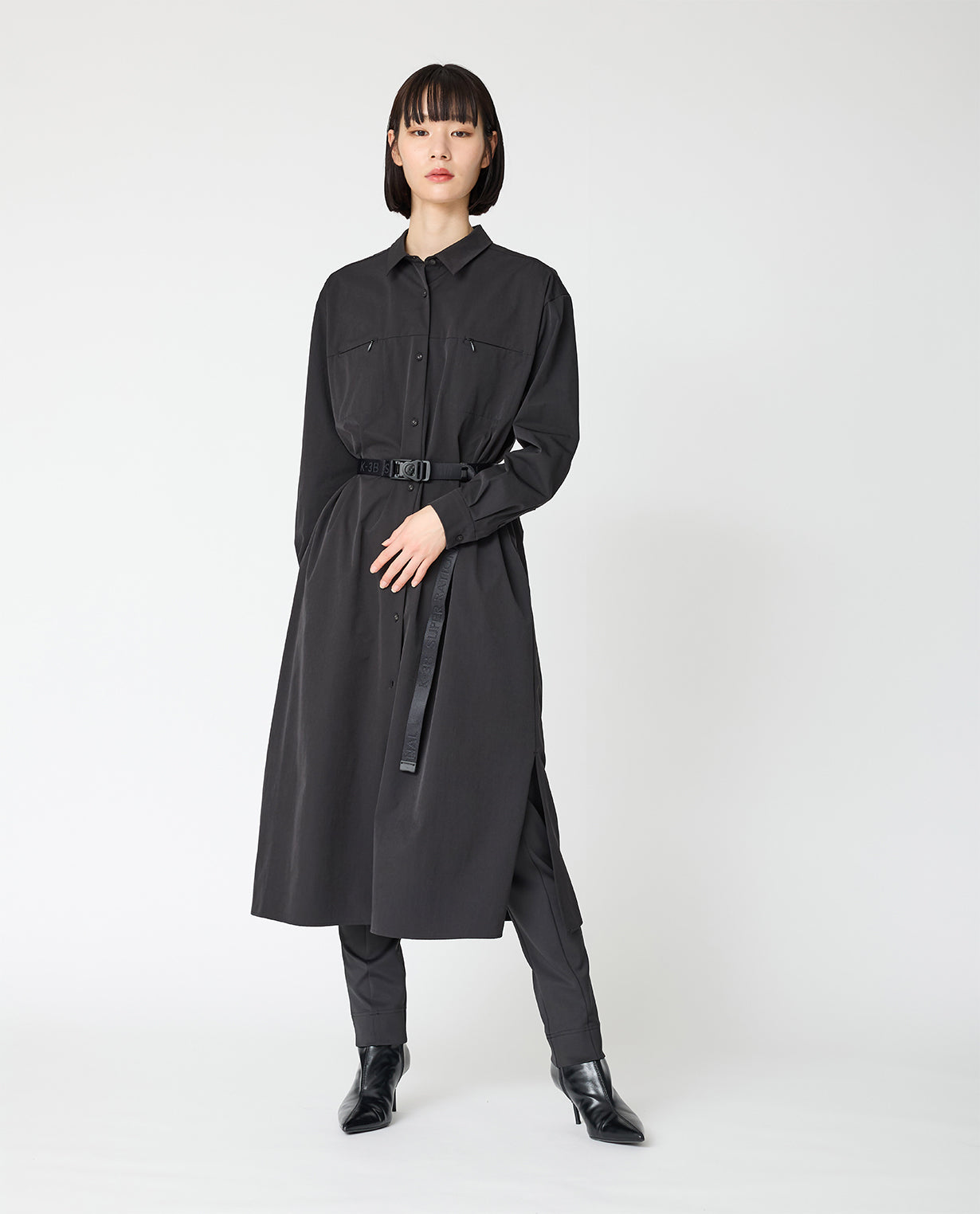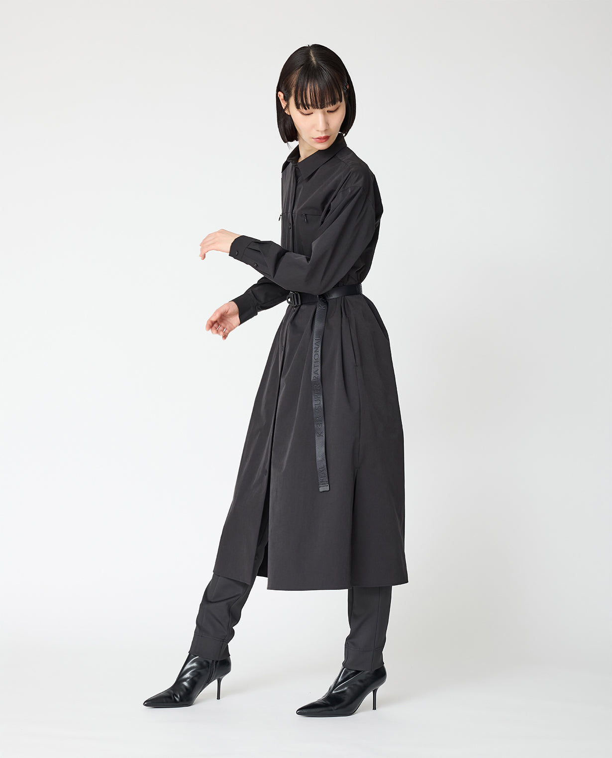 The K-3B women's all-in-one is a dressy piece designed for an elegant look. There is elastic on the sides of the waist and a double D-ring belt allows the size to be adjusted, and we recommend wearing it with the top loose and the upper body floppy. It creates a handsome style as if you were wearing the top and bottom separately. The hem has a tapered silhouette and can be rolled up to match your shoes for a stylish look. The buttons on the outside are also carefully designed to give off a fashionable feel. The parts you can't see are snap buttons, so it's easy to put on and take off. We have deliberately omitted the back pocket to create a beautiful silhouette. The roll-up sleeves are also two-way, allowing you to change the length to suit your style.