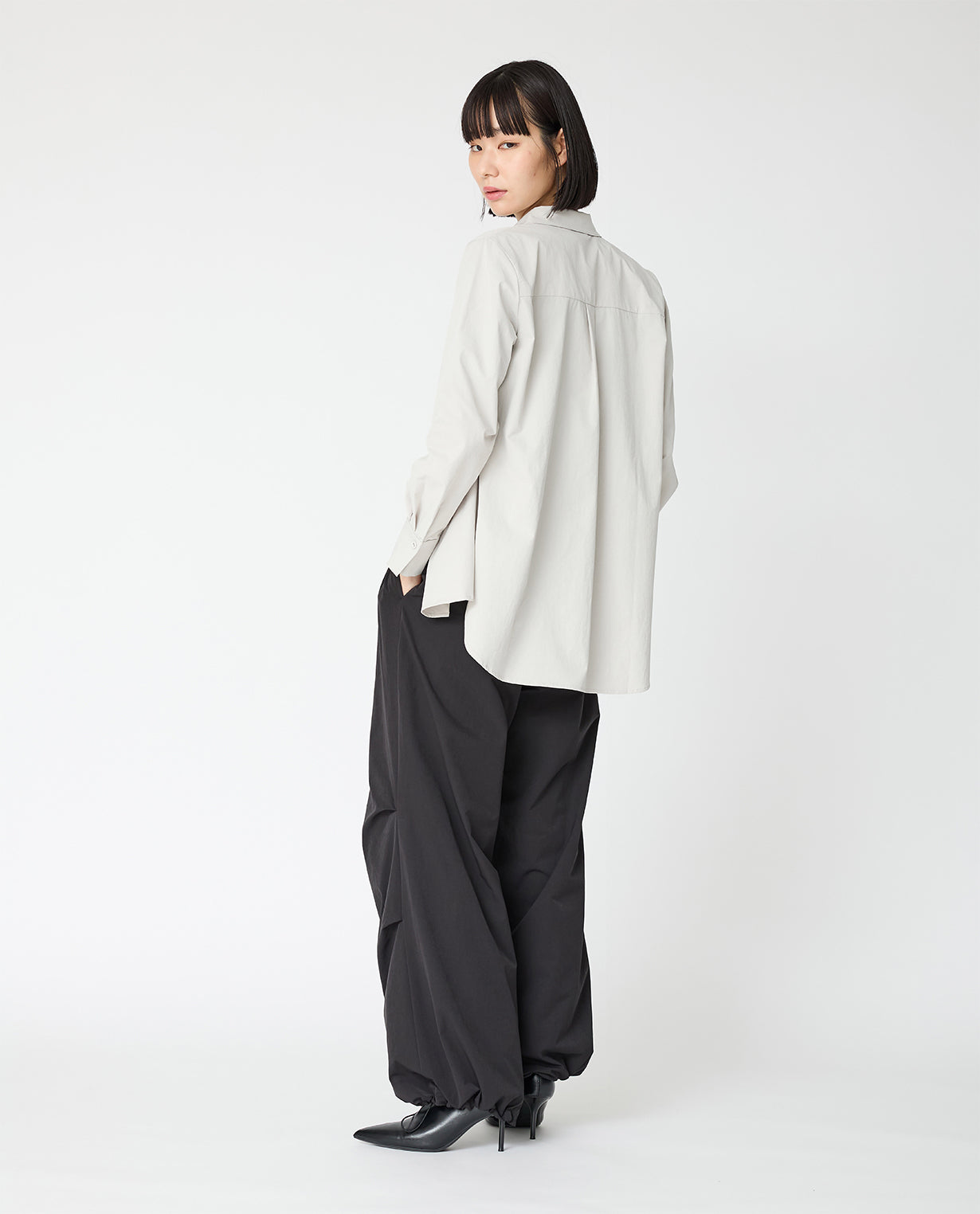 L生地のナチュラルな風合いとシックなデザインが融合した、大人の魅力を引き立てるシャツ。ミニマルな中にもこだわりが詰まった一着です。