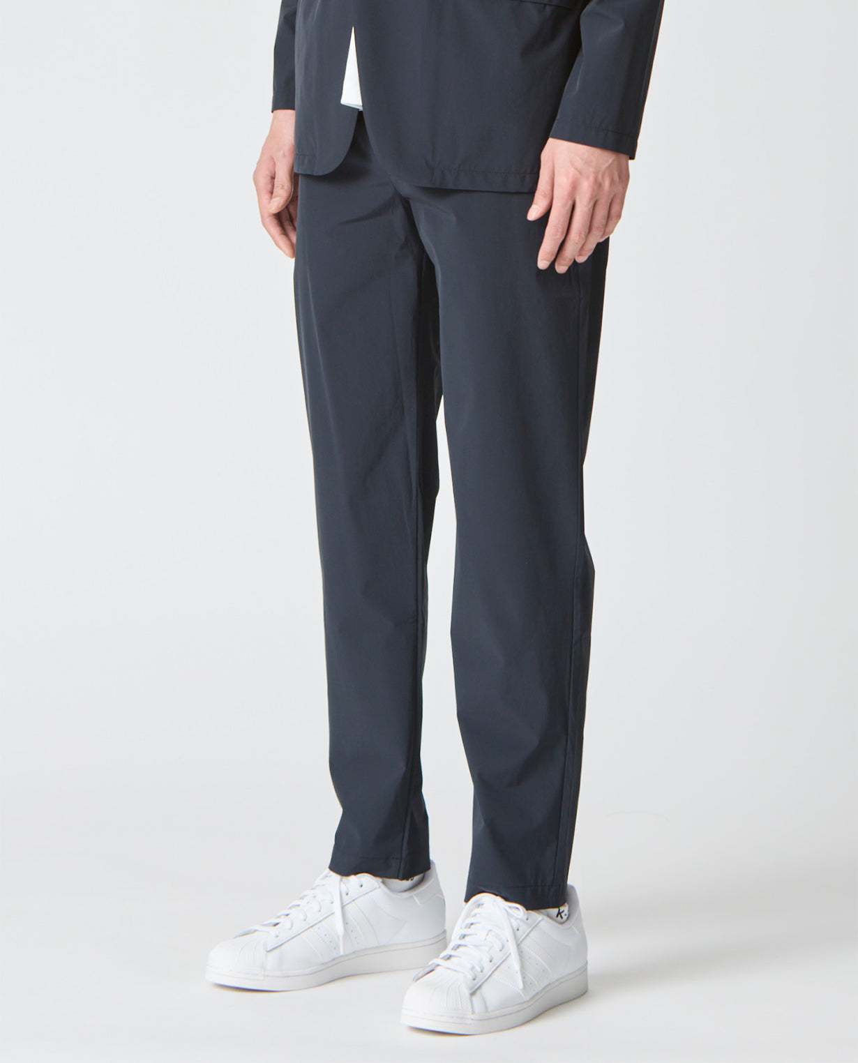 These gentlemanly golf pants combine minimalism and sportiness, making them a versatile item that can be worn in a wide range of situations. By simplifying them to the extreme, they have been created into stylish adult pants. The slightly thin fabric can be worn for a long time regardless of the season by adjusting the inner layer. The tapered silhouette that becomes slimmer towards the hem creates an excellent balance with tops. Although these pants have a dressy look, they have elastic shirring on the sides of the belt , so they fit snugly to the waist and are easy to move in, making them stress-free. These pants are perfect for serious sports where you can perform at a high level, but they are also a highly versatile item that can be worn in business situations as well.