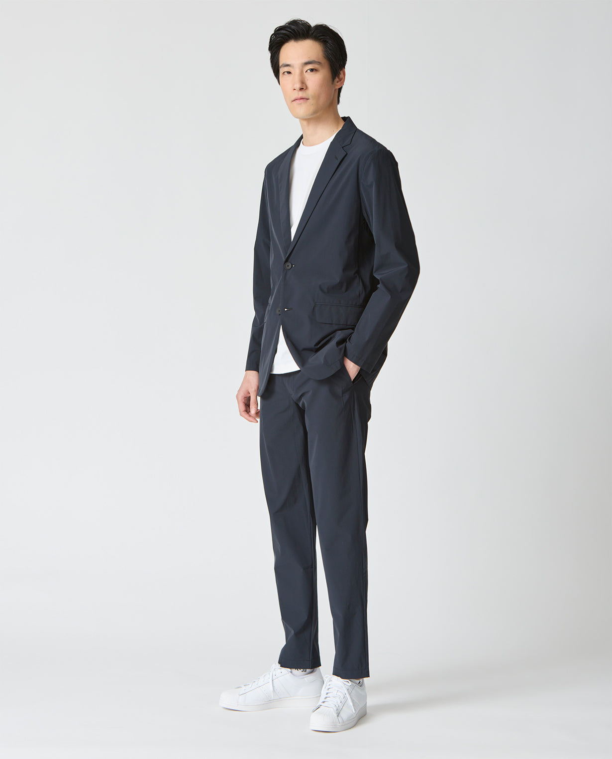 The popular 157 pant type features a gently tapered line that creates a beautiful silhouette, and now comes in a new model made from powdery, matte R fabric that stretches in all directions!