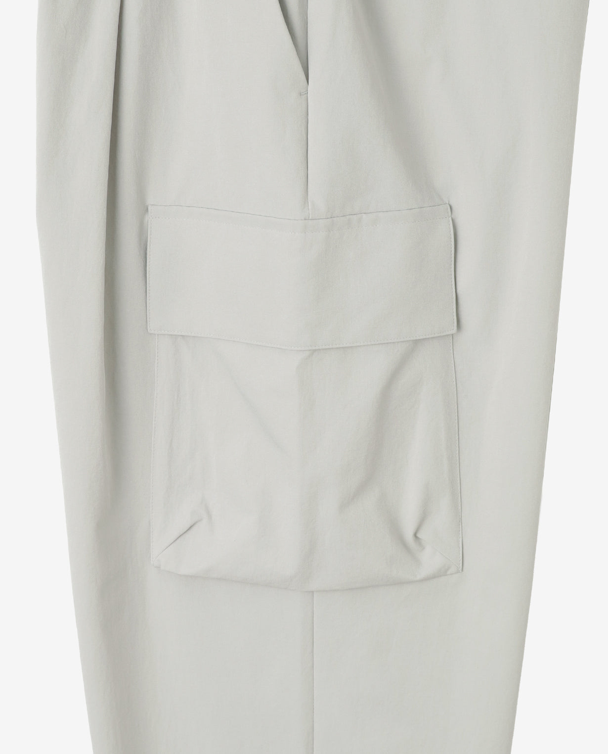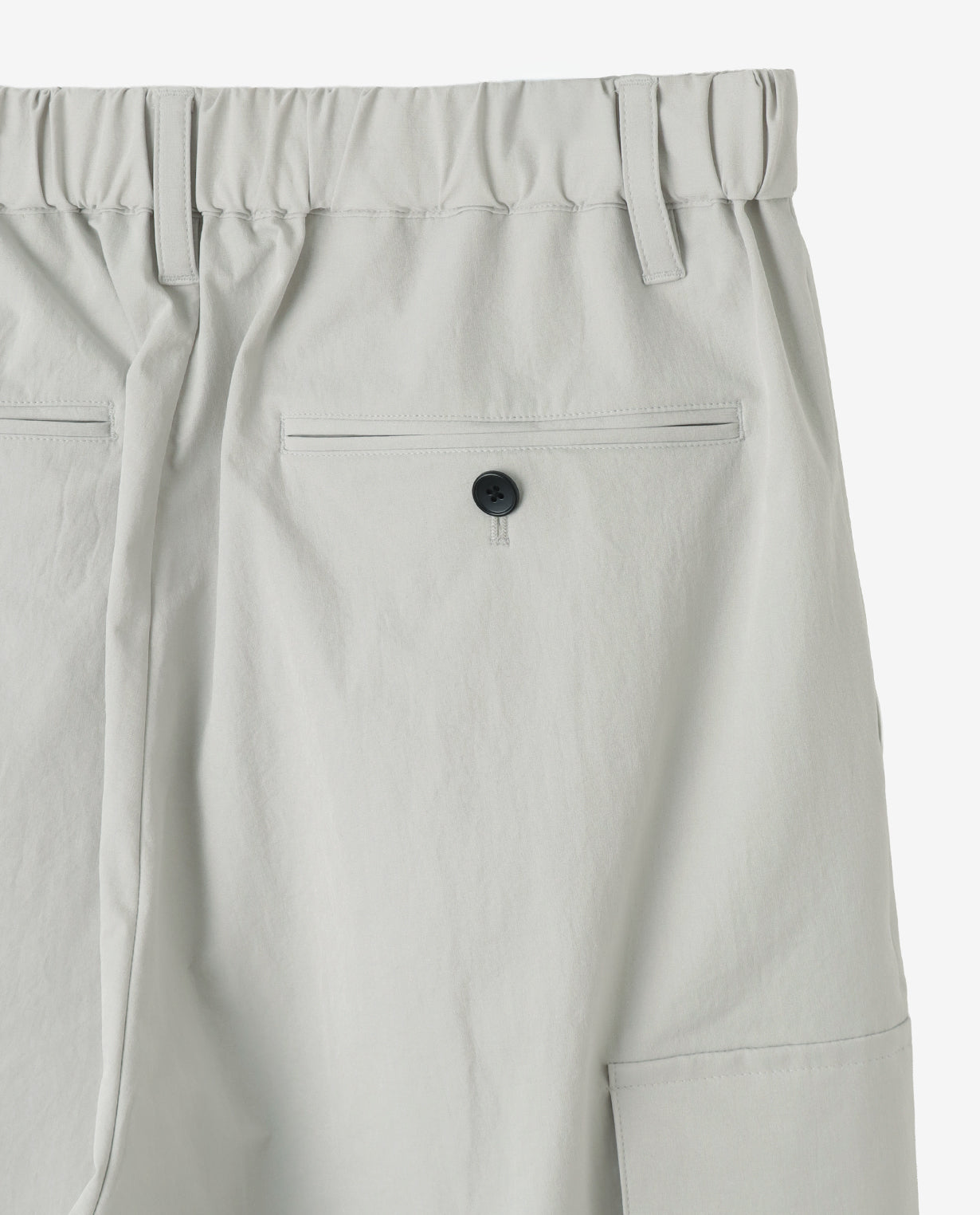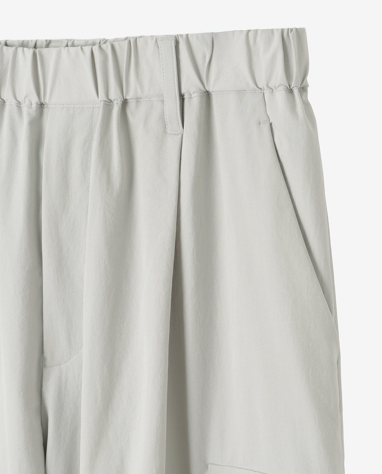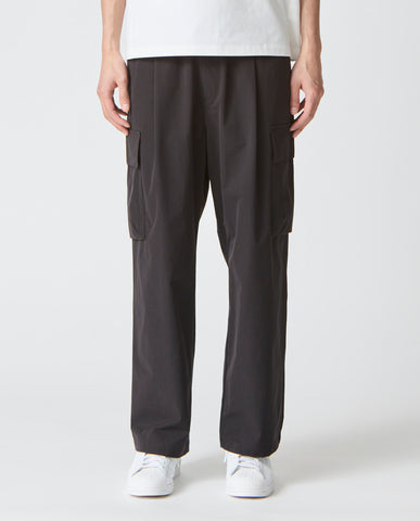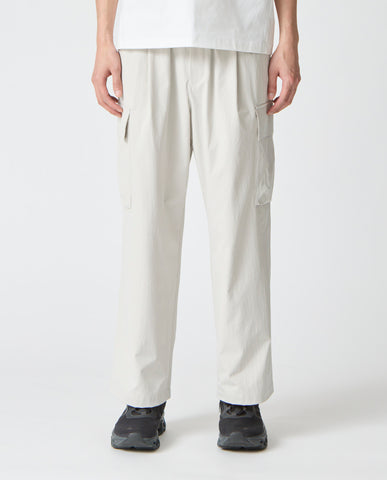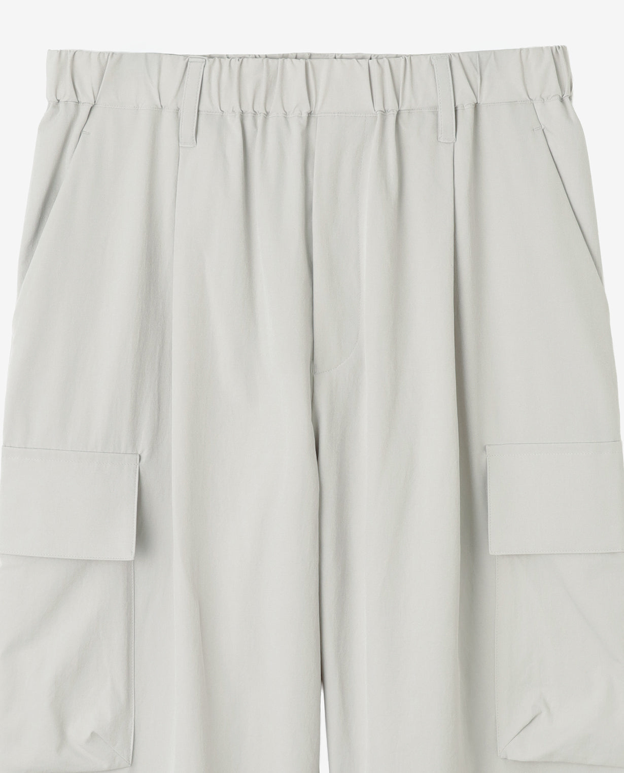 ■ 素材カジナイロンの仮撚(かりより)加工技術を活用し、収縮率の異なる糸を組み合わせた独自開発のL生地を使用。ストレッチ性を備えながら、天然素材のようなナチュラルな風合いが魅力です。微マットなテクスチャーが軽やかさと程よいハリ感を両立し、ドライでさらりとした肌触りを実現。速乾性にも優れ、イージーケアな点もポイントです。快適な着心地と抜け感のあるシルエットで人気を集め、さまざまなアイテムが展開されています。■ デザイン分量感のあるストレートシルエットで構築した、ワイド設計のカーゴパンツ。腰まわりから裾にかけて落ちる直線的なラインが、力みのない佇まいを生み出します。ウエストは総ゴム仕様にドローコードを備え、フィット感を自在に調整可能。ベルトループも配置しており、スタイルに応じたアレンジにも対応します。両腿にはフラップ付きのカーゴポケットを配置。立体的すぎないフラットな設計にすることで、無骨さを抑えた都会的な印象に仕上げています。加えて、脇ポケットと背面ポケットも備え、収納力を確保しています。裾幅は広めに設定し、シューズとのバランスを取りやすい設計。ボリュームを活かしたコーディネートはもちろん、トップスをタックインすることでウエストまわりをすっきりと見せる着こなしも可能です。機能性とミニマルな表情を両立した、現代的なワイドカーゴパンツです。■ スタイリングボリュームのあるシルエットを活かし、トップスはコンパクトなカットソーやシャツを合わせることで全体が引き締まります。同素材のトップスと組み合わせれば、統一感のあるセットアップスタイルとしても着用可能。足元はレザーシューズで端正に、スニーカーで軽快にと、合わせる一足で印象の変化を楽しめます。■ 同じ生地のアイテムを見るL生地 (MEN)