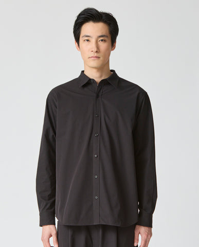 355_L ヴィンテージストレッチ 長袖シャツ ワイドフィット (ブラック)