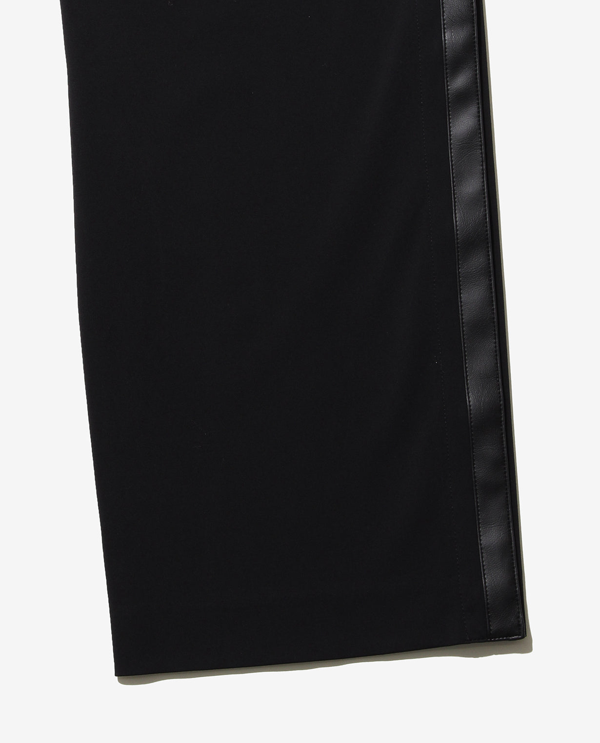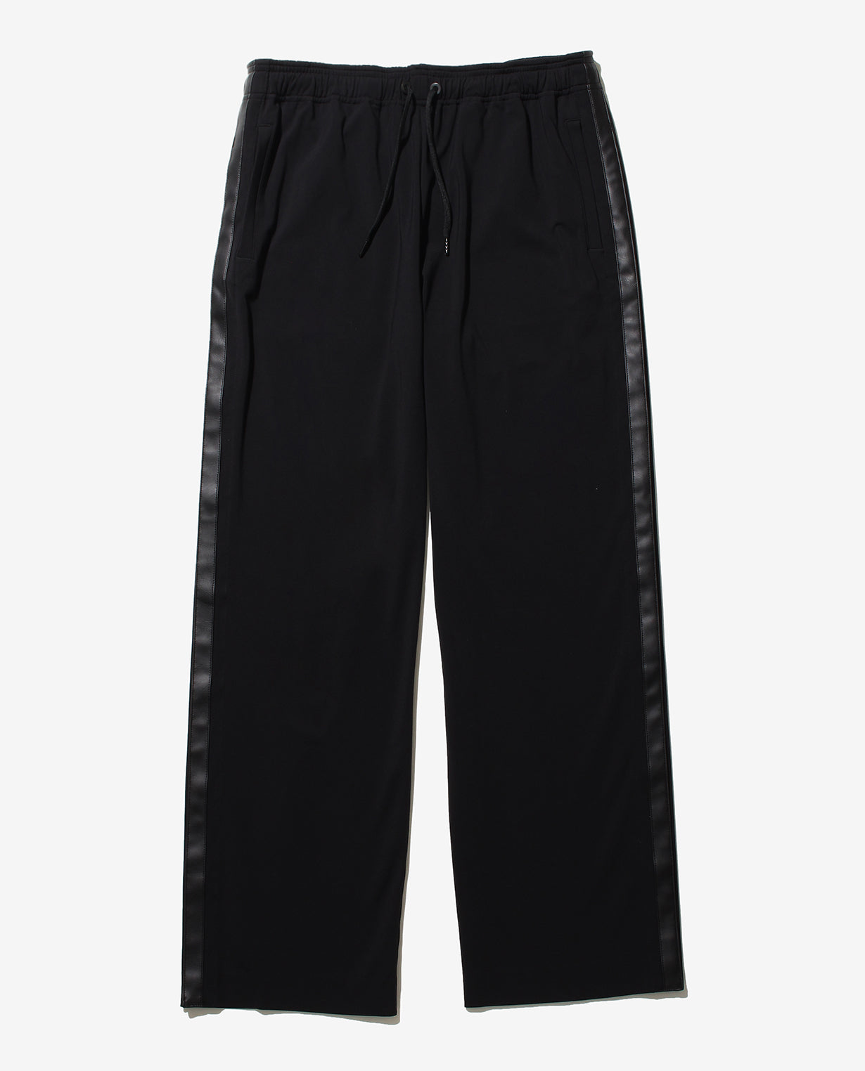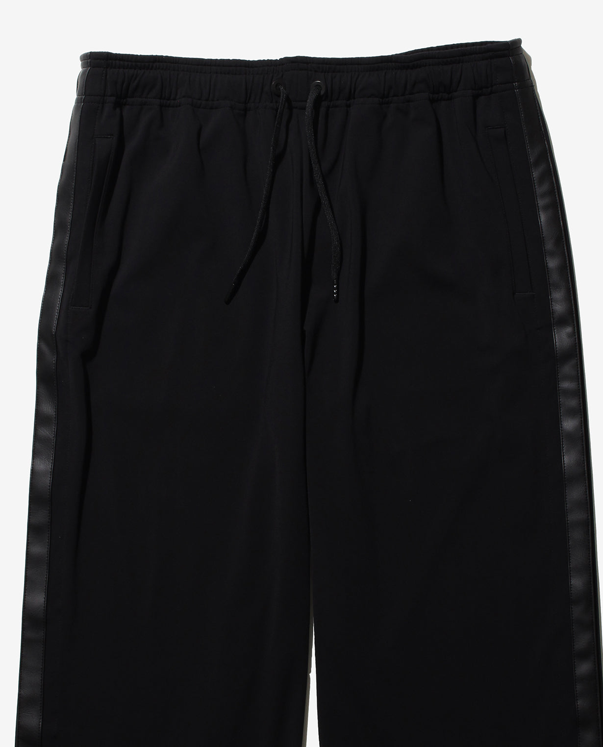 ◾Design Designed for adult use in town, the natural fit and straight silhouette are streamlined. The hem width is neither too wide nor too narrow, elevating basketball pants, which tend to be too sporty, into chic street wear. The pants are made of woven fabric rather than cut-and-sewn material, and are stitched extensively to give them a classy look. Metal snaps are hidden under the leather switching lines on both sides, allowing you to open the side seams with one touch. It is convenient for putting on and taking off high-cut sneakers and biker boots. We paid particular attention to the texture of the metal snaps, which are usually hidden, to create a high-quality finish.