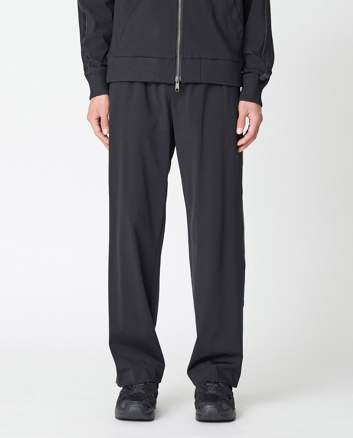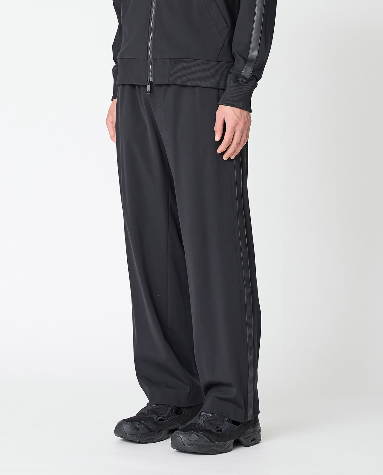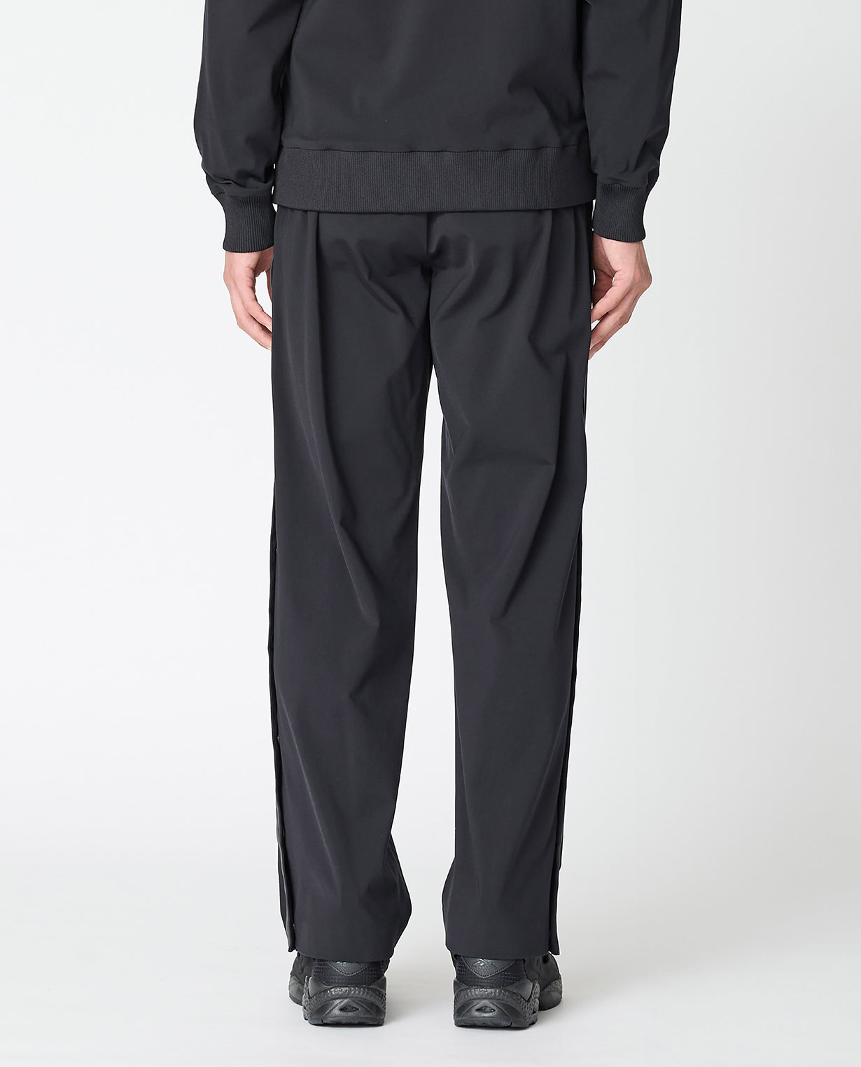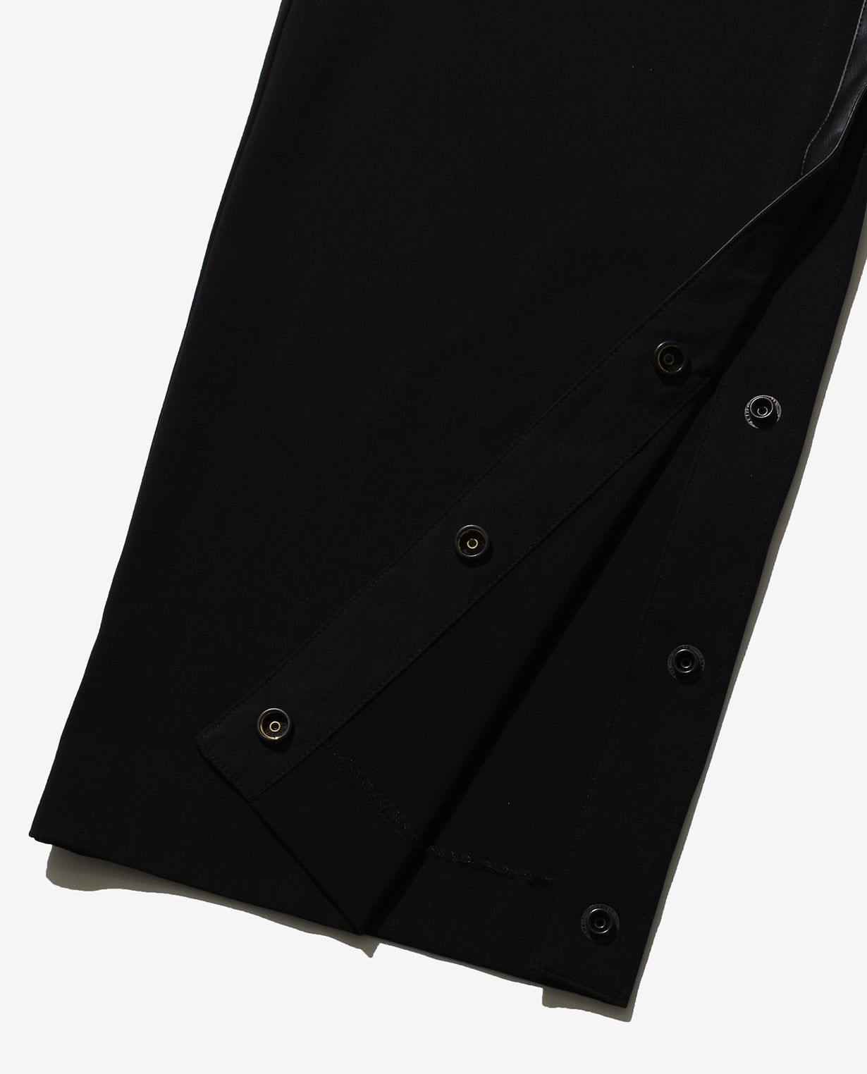◾Design Designed for adult use in town, the natural fit and straight silhouette are streamlined. The hem width is neither too wide nor too narrow, elevating basketball pants, which tend to be too sporty, into chic street wear. The pants are made of woven fabric rather than cut-and-sewn material, and are stitched extensively to give them a classy look. Metal snaps are hidden under the leather switching lines on both sides, allowing you to open the side seams with one touch. It is convenient for putting on and taking off high-cut sneakers and biker boots. We paid particular attention to the texture of the metal snaps, which are usually hidden, to create a high-quality finish.