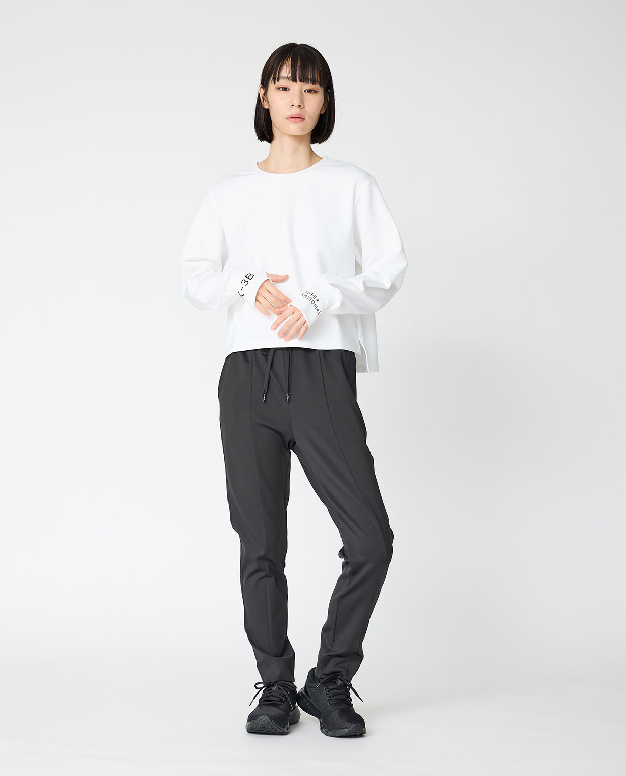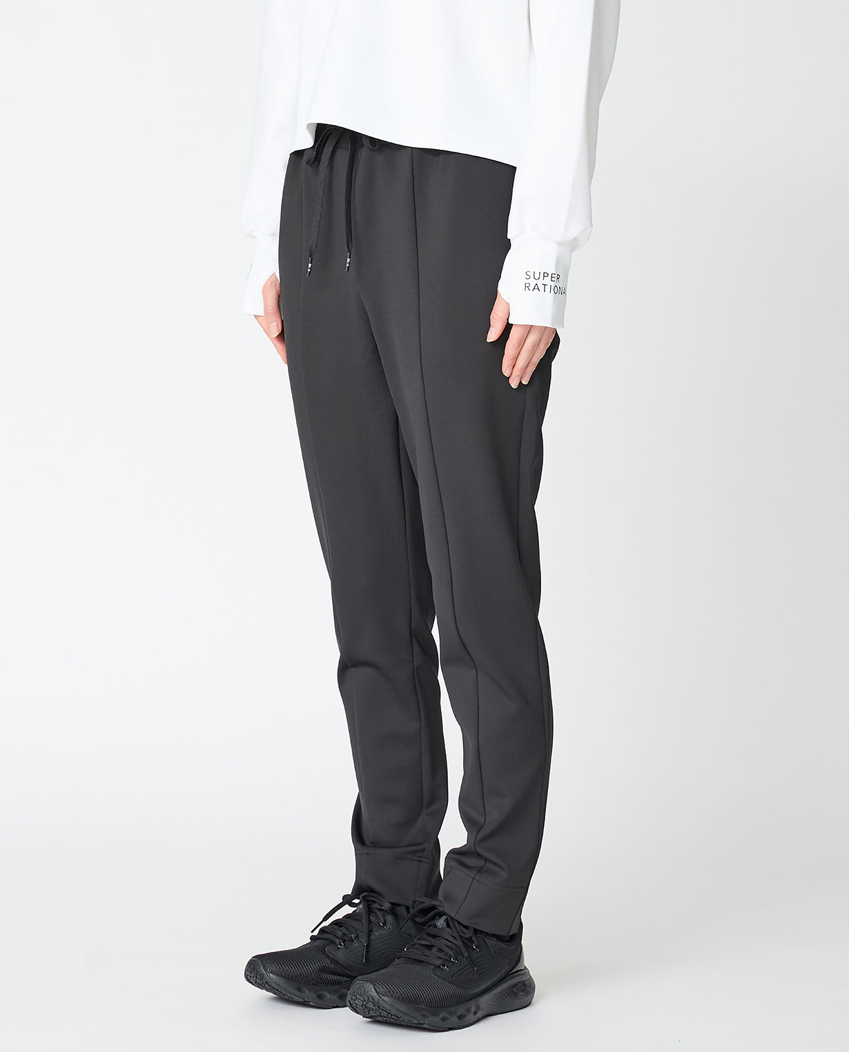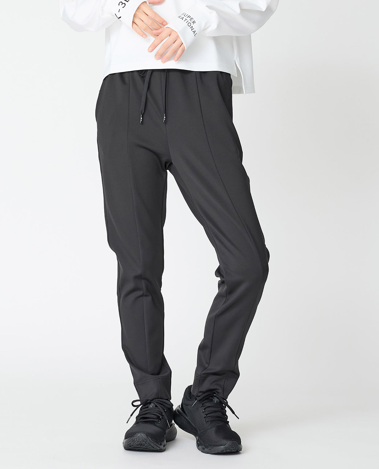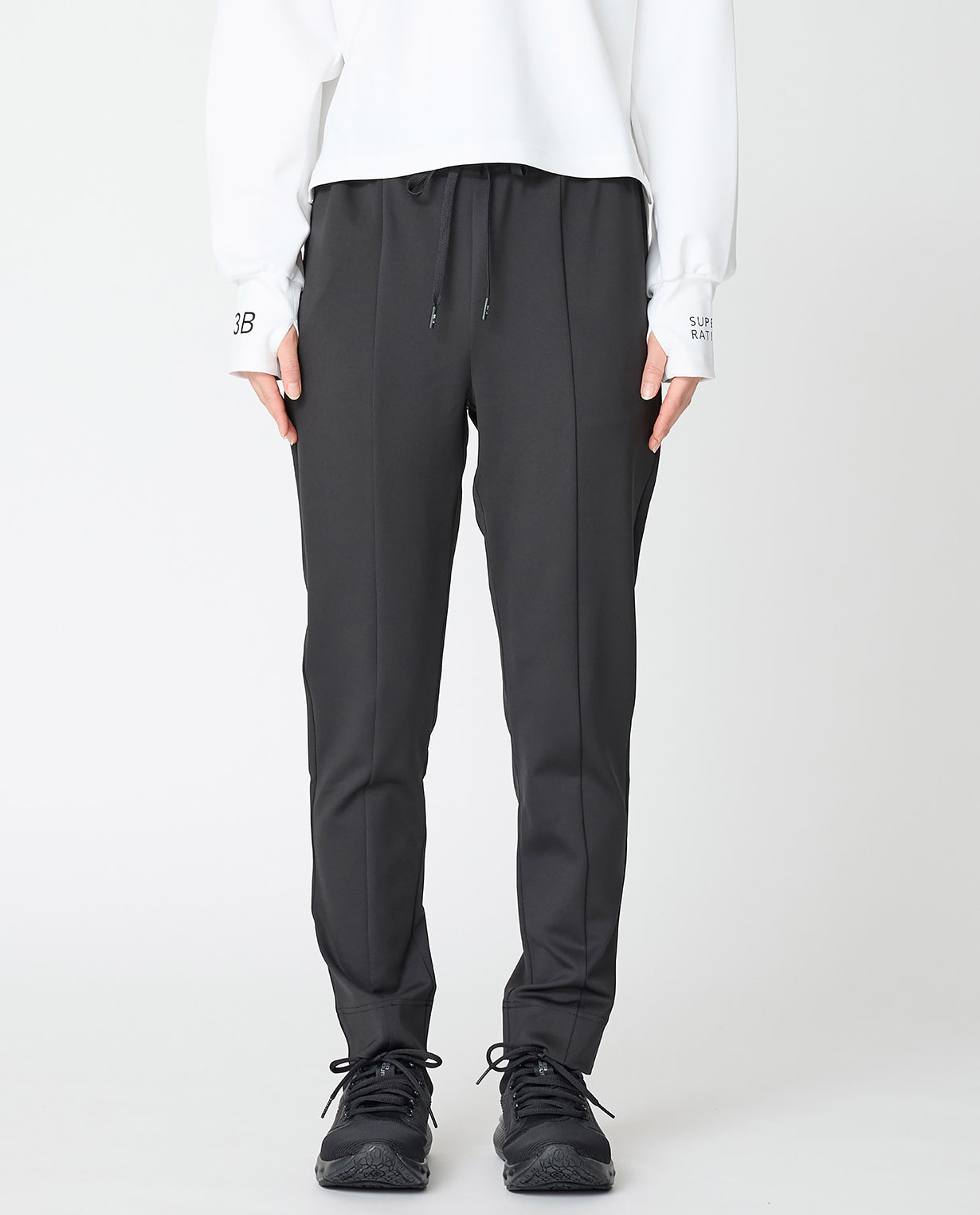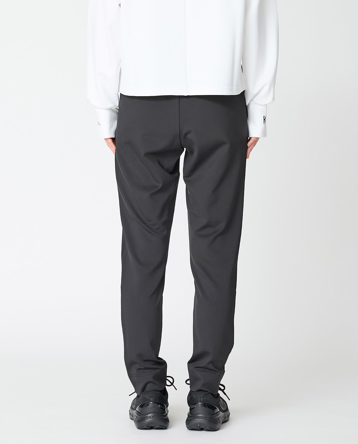 Functional and stylish casual pants ◾Material K-3B Popular The pants are made of 2D cardboard knit. The unique luster of the fabric At first glance you wouldn't realize it was knit, as it has a smooth, fine-grained surface and moderate thickness. Generally, cardboard knit has a bulky and solid texture, but 2D cardboard uses special yarns to maintain the firmness and stiffness of the fabric while ensuring comfortable elasticity and supple drape. It flexibly follows the movements of the body without losing its silhouette. It is made using a technique called double-face, in which two high-density pieces of fabric are joined on the inside, so the back of the product is as beautiful as the front and feels good against the skin. ◾Design These beautiful casual pants take advantage of the unique bulkiness of the D fabric. They have a slim tapered cut, but the fabric is firm, so they don't show off the lines of your legs too much. The vertical cut-out line on the front creates a slimming effect, while also adding a touch of modernity to the casual look. The front of the waist belt is flat, so it keeps your stomach area neat. Elastic shirring from the sides to the back of the belt ensures comfort and a beautiful line. The inseam is slightly shorter than other pants, so it is designed not to interfere with the openings of sneakers or short boots. There are four pockets and a drawstring for size adjustment, so it is functional. The design can be worn in a wide range of situations, from active scenes to daily use. It's also wrinkle-resistant and highly washable, so it will maintain its crisp, freshly grated look for a long time.