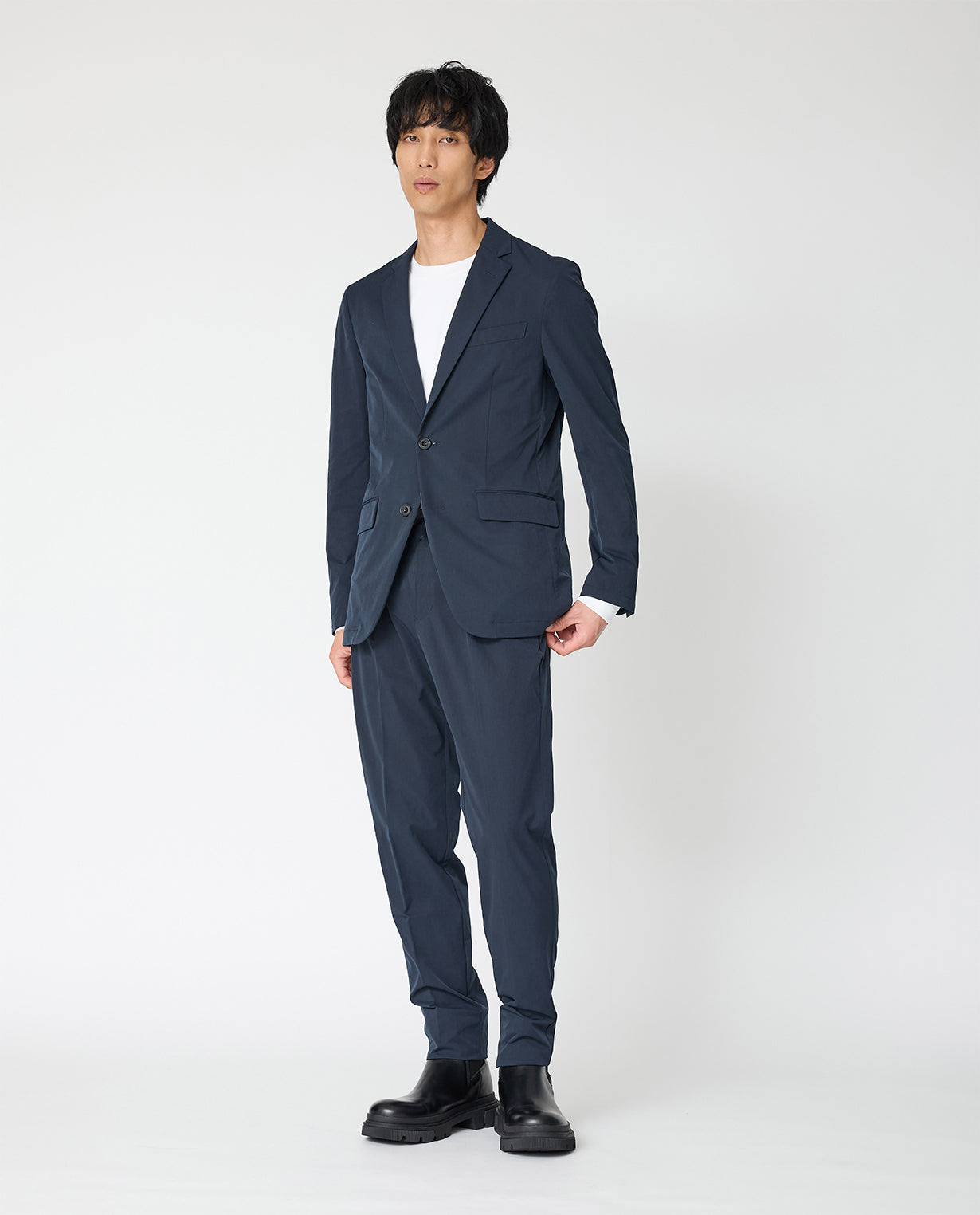 • Carbon Navy ■ 002_L Vintage Stretch Tailored Single Jacket