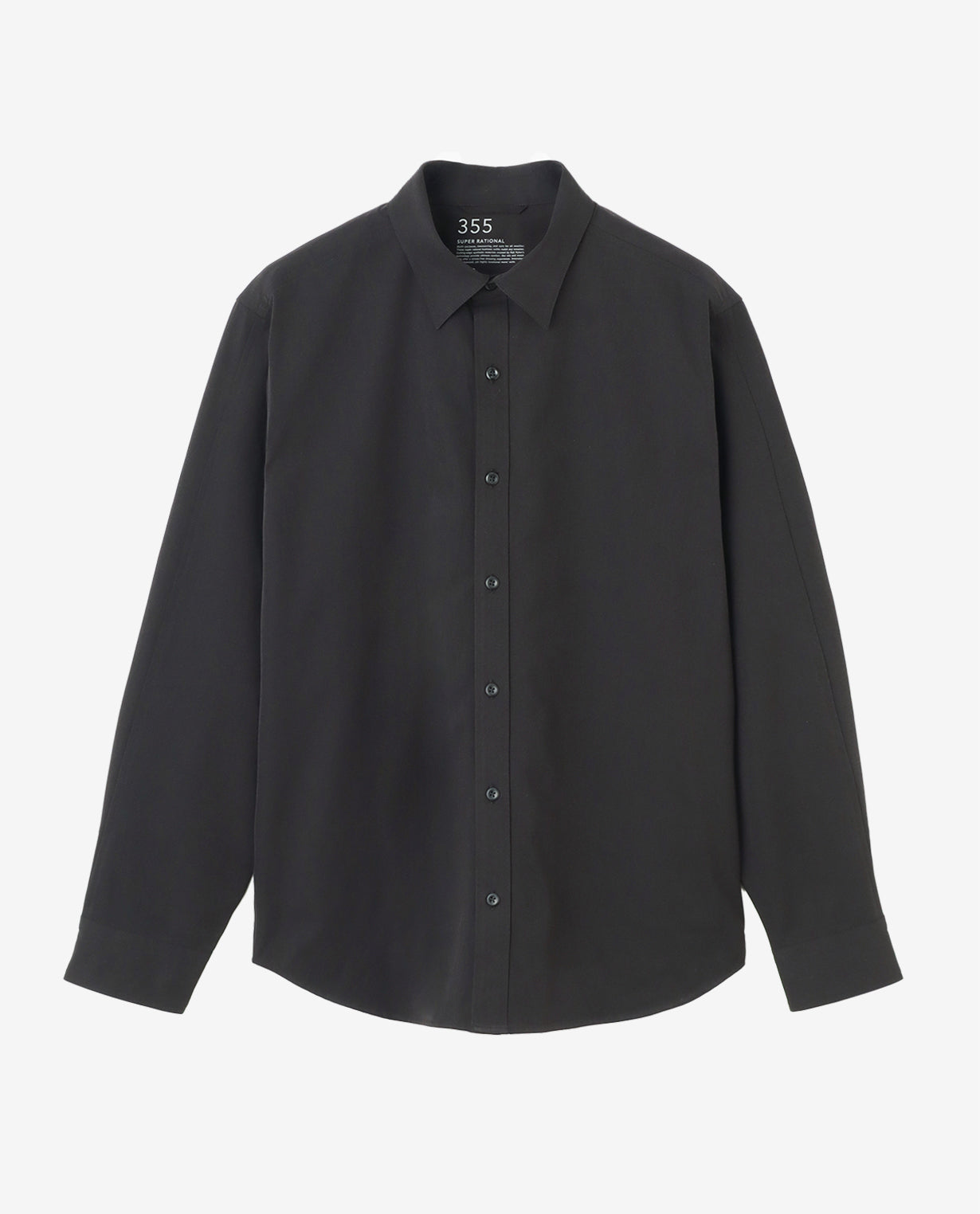 355_L ヴィンテージストレッチ 長袖シャツ ワイドフィット (ブラック)