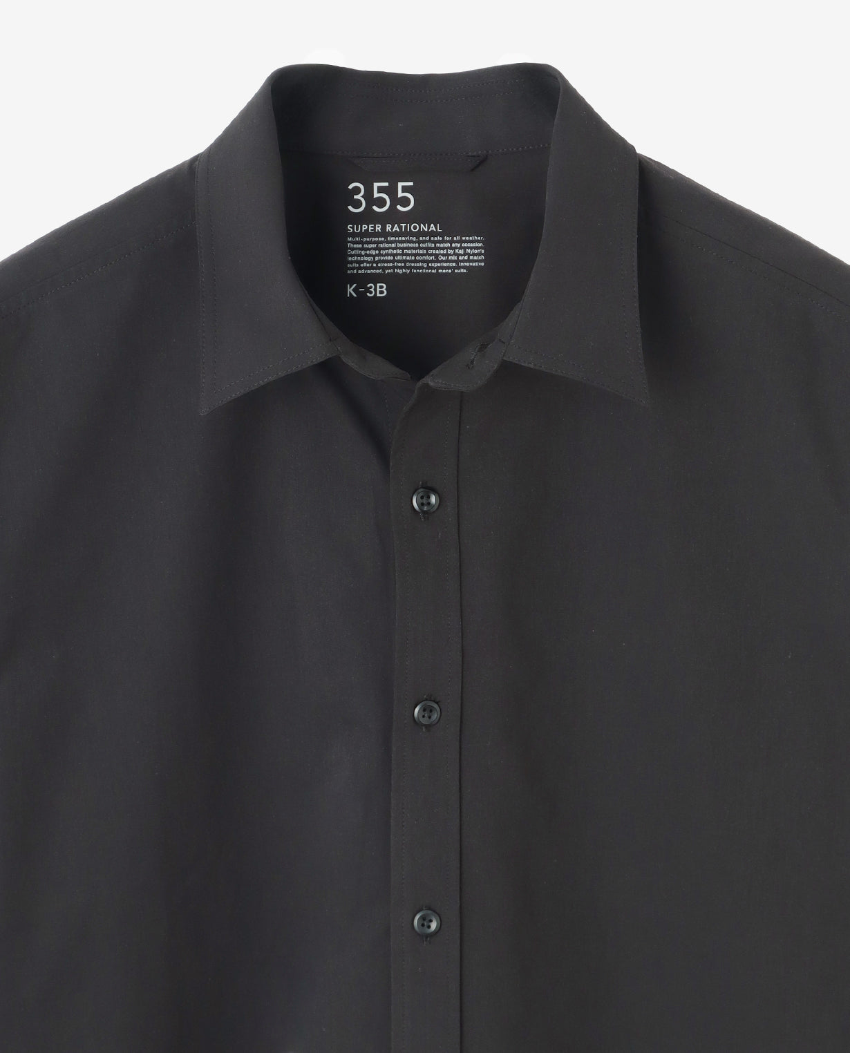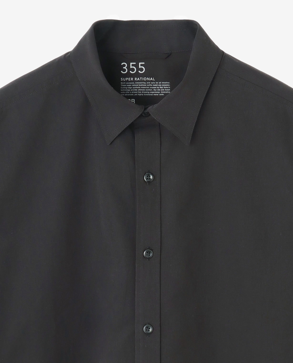 フロントは装飾を削ぎ落としたシンプルなレギュラーカラー仕様。前立てはベーシックな表前立てで、ボタン間隔も均整の取れたバランスに設計しています。胸ポケットを排したことで、より洗練された印象を強調しました。