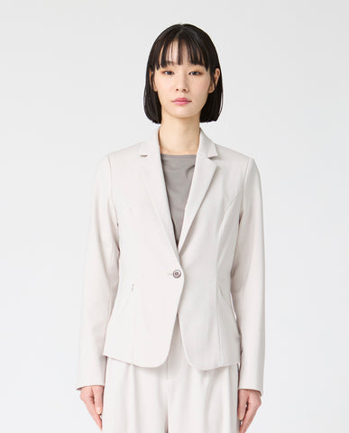 伸縮性に優れ、高級感のあるテクスチャーのN生地を使用した、モダンなデザインのテーラードジャケット。ビジネスやフォーマル、ちょっとしたパーティまで、さまざまなシーンで活躍するミニマルなデザインに仕上げています。