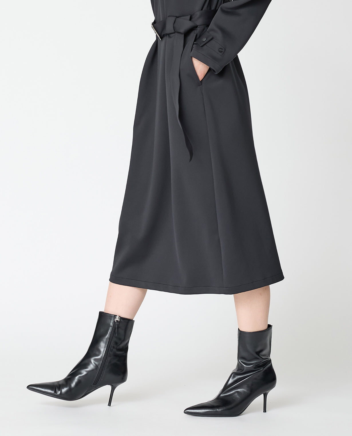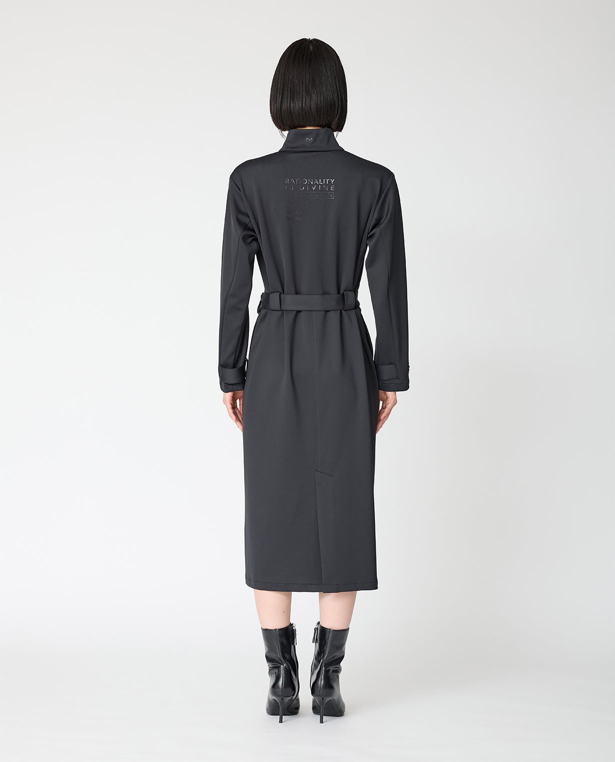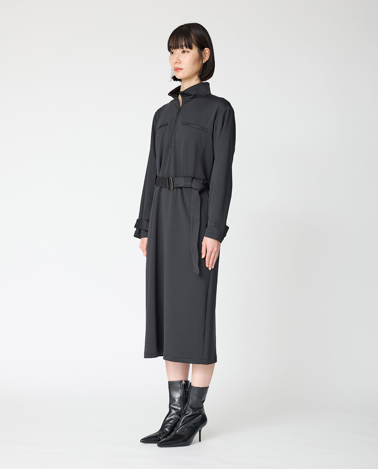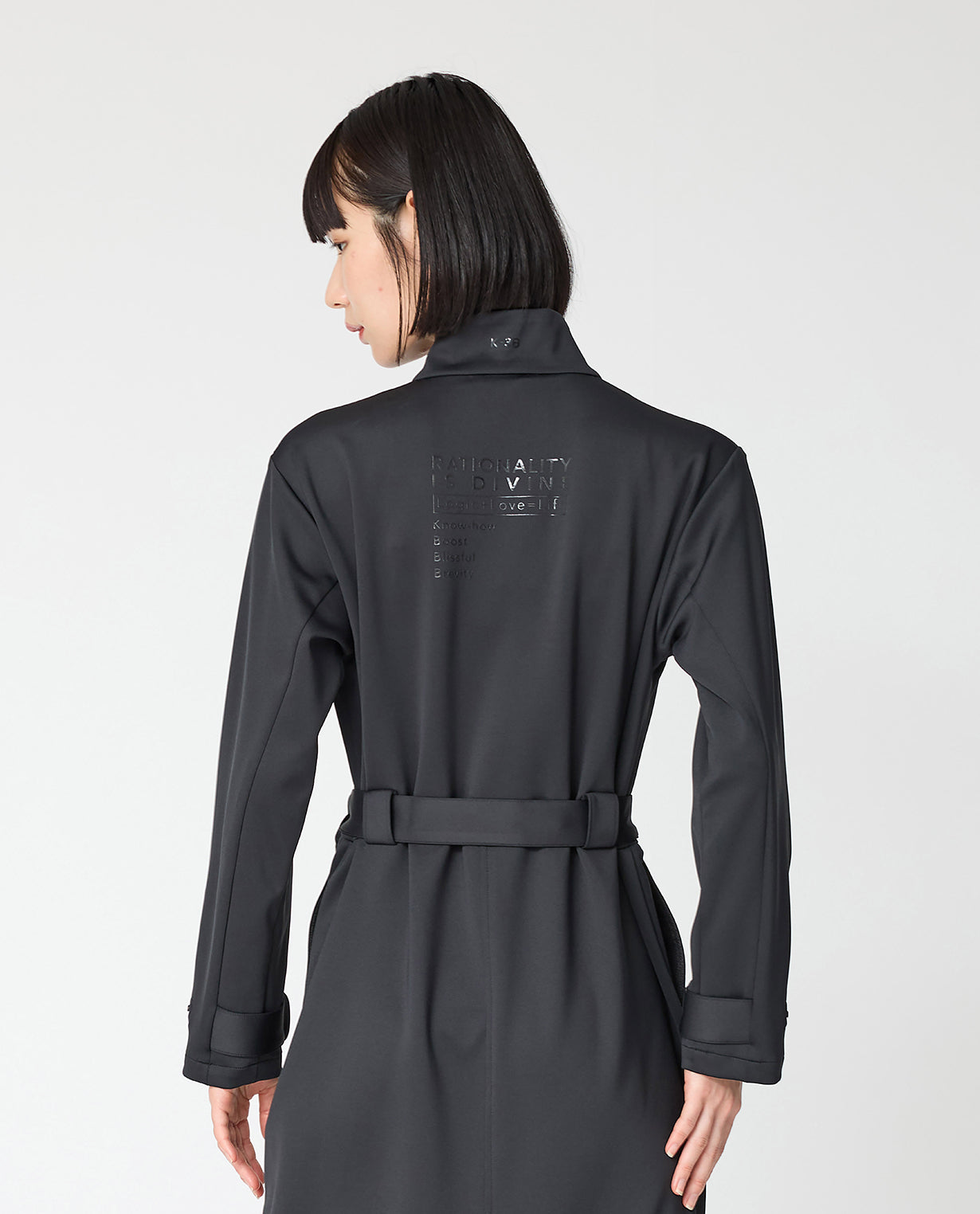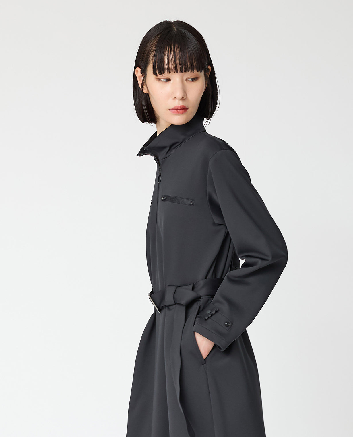 ■ 素材秋冬の定番素材「2Dダンボールニット」を使用。一般的なダンボールニットはかさ高でソリッドな印象ですが、本素材は特殊な糸使いによりハリやコシを保ちながら、しなやかなドレープ性と優れた伸縮性を実現しています。身体の動きに柔軟に対応しながらもシルエットは崩れにくく、美しいラインをキープ。高密度な二枚の生地を内側でつなぎ合わせたダブルフェイス構造によって、裏面も表同様に美しく仕上げられており、肌あたりもなめらかです。さらに見た目に反する軽さとソフトなタッチ、癖になるストレッチ性は、K-3Bが追求する“動きやすさ”を体現しています。上品な光沢感ときめ細かな表面感は、一見ニットと分からないほど洗練された印象を与えます。■ デザイン無駄をそぎ落としたシンプルなシルエットに、機能性を兼ね備えたディテールが特徴。スタンドカラーは開き具合を調整できるZIP UP仕様で、レイヤードスタイルにも対応します。袖口には2段階調整のスナップボタンを採用し、気分やスタイルに合わせてシルエットを変化させることが可能。背面には光の加減で存在感を放つシリコンプリントを施し、洗練されたアクセントを加えています。■ コーディネートシルエットの美しさと上品な素材感により、一枚で着ても完成度の高いスタイルが叶います。インナーとのレイヤードや袖のシルエット変化で表情を変えられるため、シーンや気分に合わせた着こなしが可能。上質感と機能性を兼ね備えたデザインは、オン・オフ問わず幅広く活躍します。 ■ 同じ生地のアイテムを見るD生地 (WOMEN)