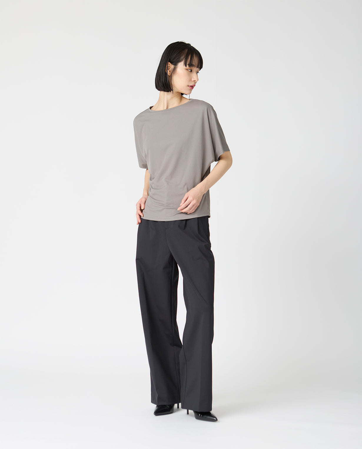 0320_C コンフォータブルストレッチ ドルマンカットソー (グレー)