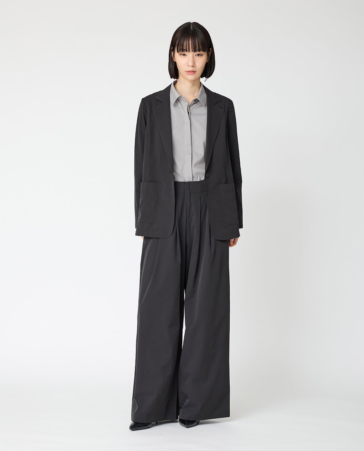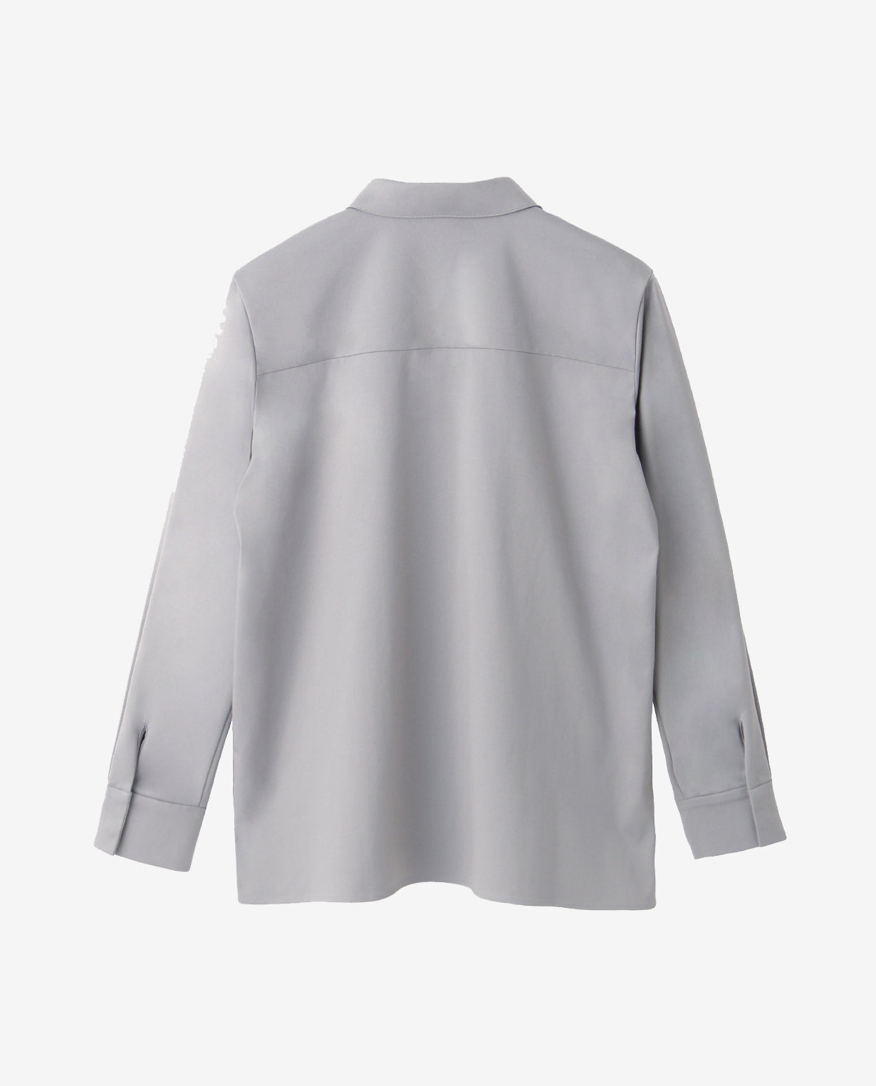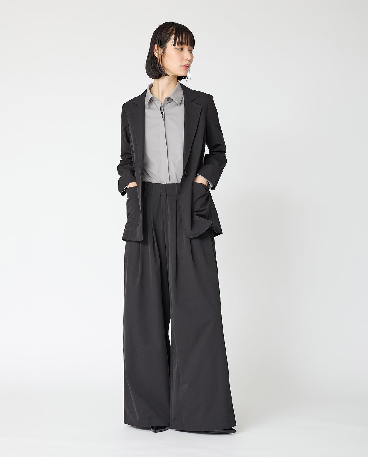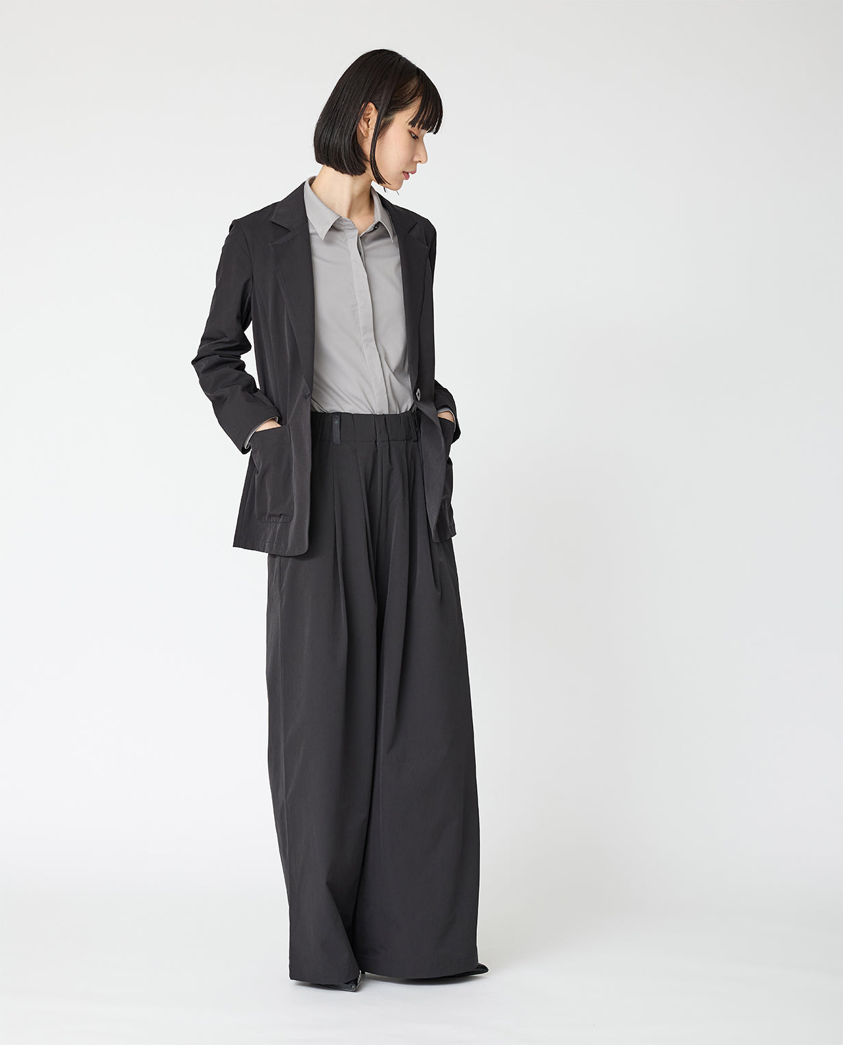 ■ 素材最高級コットンであるスーピマコットンを使用した新素材WW生地。超長綿であるスーピマコットンを使用することで、生地がしなやかでやわらかく、滑らかな肌触りになり、快適な着用感を得れます。ポリエステル繊維と合わせることで生地の滑らかさはそのままにポリエステルの特徴である吸水性、速乾性も備えたハイテク生地です。また生地にはシルケット加工を施して光沢感を出し、よりソフトな手触りに仕上がっています。■ デザイン素材の良さを活かしてミニマル・ルックに徹したボックスシャツです。ドレッシーにもカジュアルにもアレンジできるように、ディテールにこだわったているので、シーンやシーズンを問わず着用いただけます。衿幅はコンパクトでクセがなく、フロントの打ち合わせは比翼にしてボタンが見えない仕様。それに合わせて袖口も目立たないスナップ留めにし、トレンドスタイルである広幅のカフスを引き立てています。ドロップショルダーのボックスシルエットはリラックスした着心地。前後差をつけた後ろ身頃はヒップを隠す丈。オーバーシャツやちょっとした羽織りものとしても着映えがしますし、ボトムスにタックインすればフェミニンな雰囲気にも。カットソー素材でありながら、上質感とほど良い抜け感をあわせ持ったスタイリッシュな一着です。■ スタイリングテーパードパンツやIラインスカートと合わせれば、比翼仕立てのシャツが引き立つ端正な着こなしに。上品さと程よい抜け感を両立したオフィススタイルが完成します。ワイドパンツやリラックス感のあるイージーパンツと合わせれば、レイヤードデザインの立体感が際立つモードな印象に。