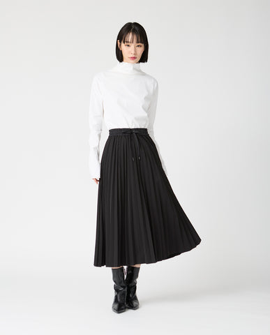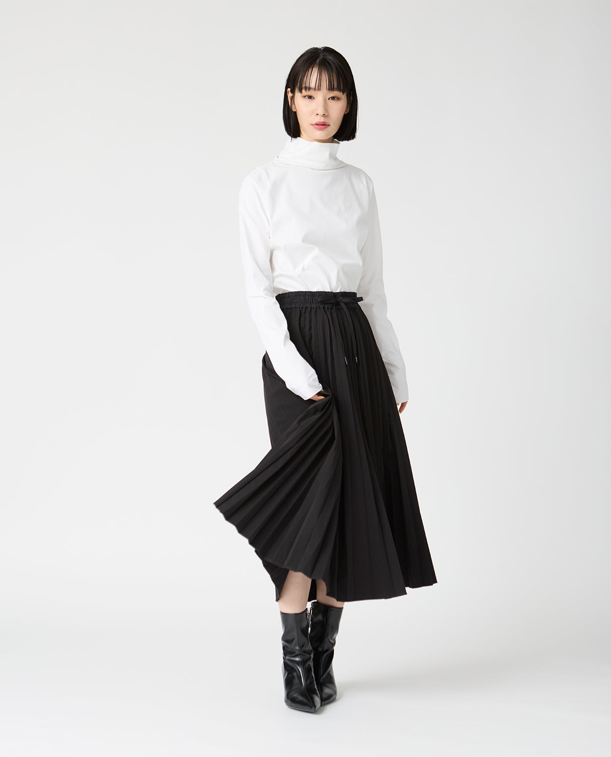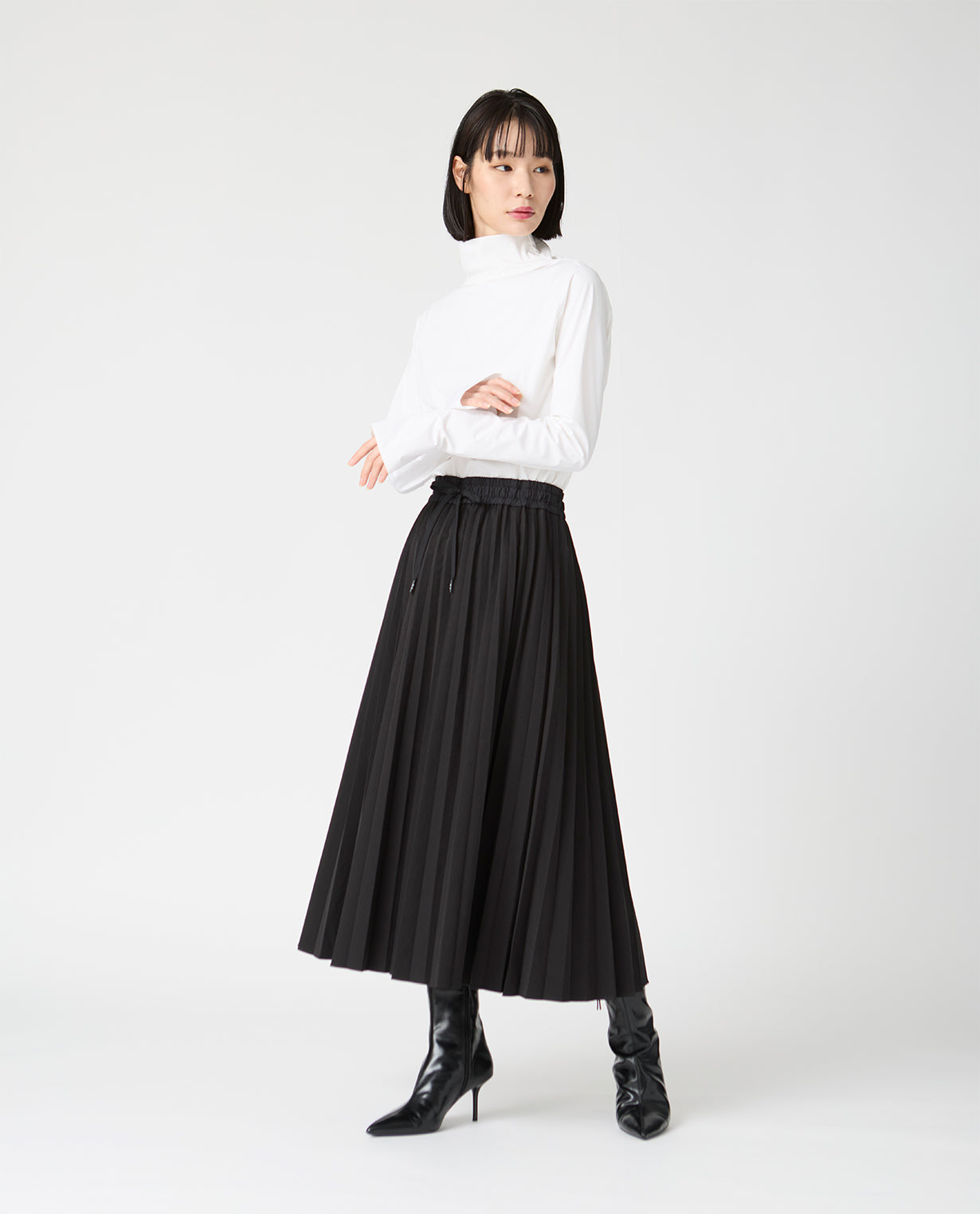 1027_L ヴィンテージストレッチ プリーツスカート (ブラック)