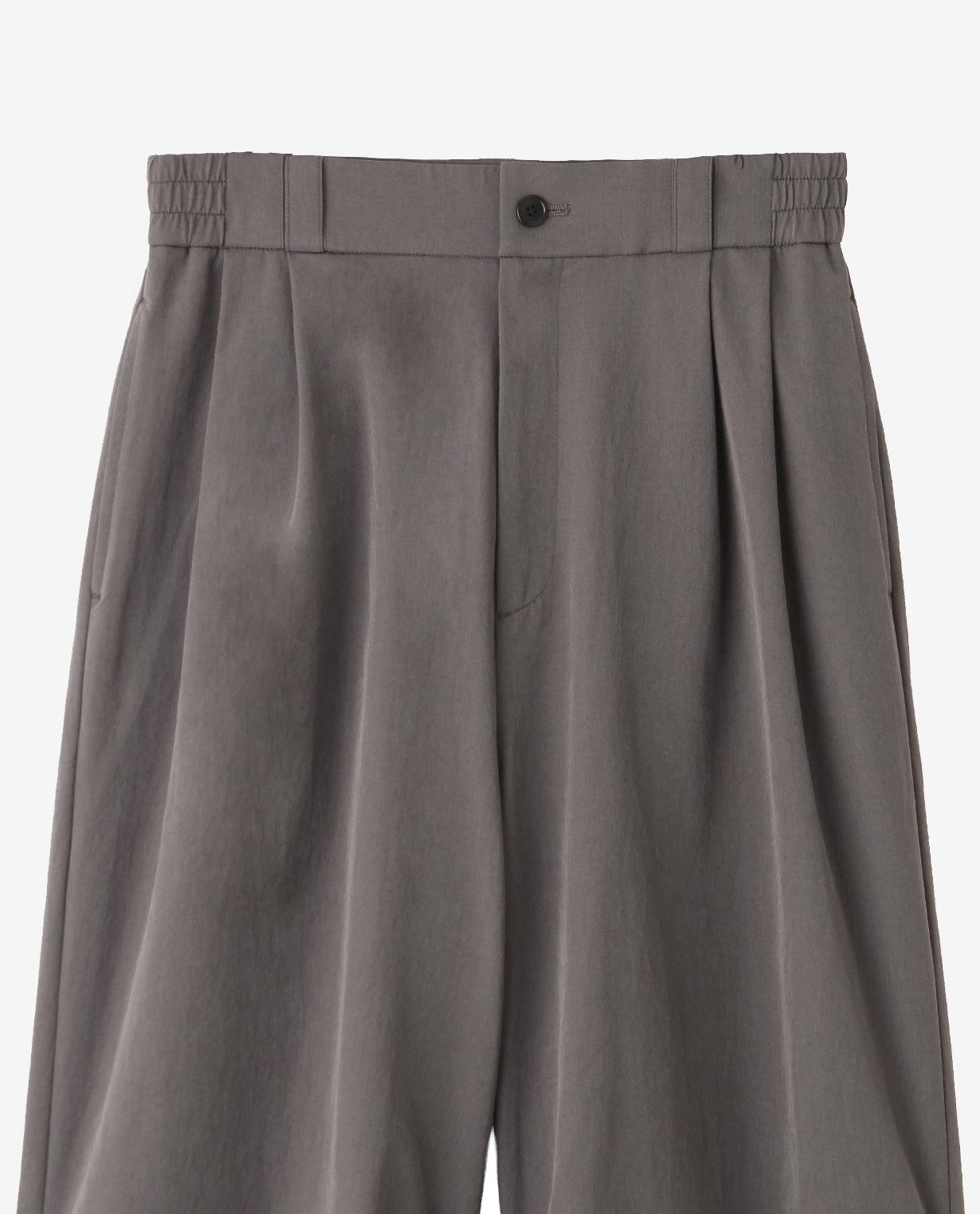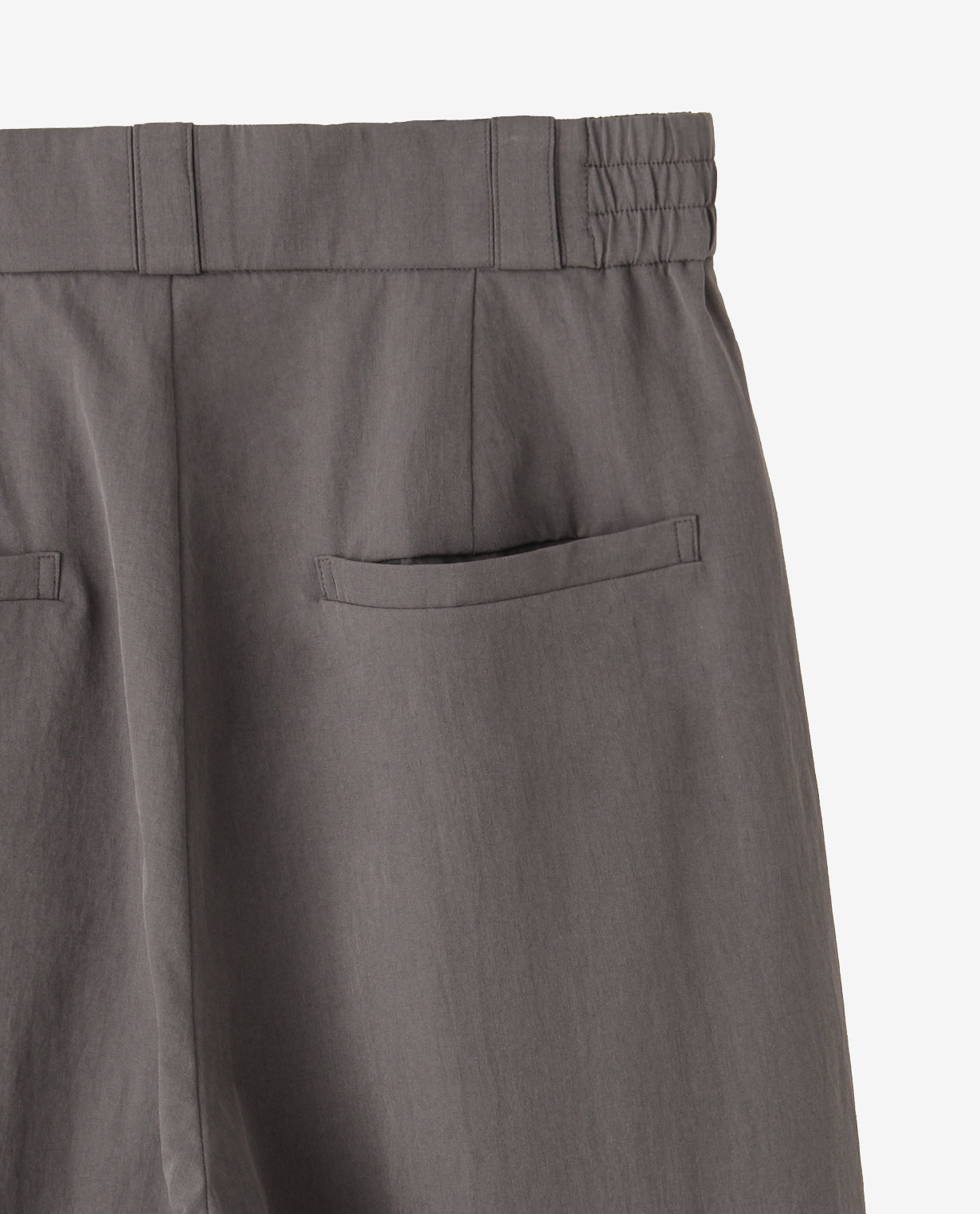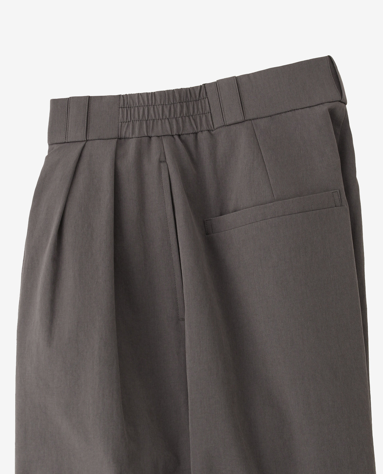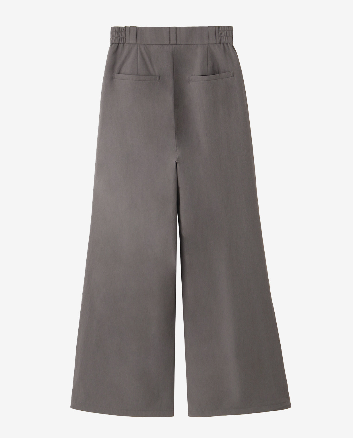 ■ 素材カジナイロンの仮撚加工技術を活かし、収縮率の異なる糸を組み合わせた独自開発のL生地を使用。ストレッチ性と天然素材のような風合いを両立し、微マットな質感と軽やかなハリが特徴です。ドライな肌触りで速乾性にも優れたイージーケア素材です。裏地には赤外線を吸収し蓄熱する特殊ポリマーを練り込んだ蓄熱パイルを使用することで、身体から出る熱を効果的に蓄えてくれるうえ、薄く軽量で肌触りがよく肌寒い時期でも暖かく着用できます。■ デザインウエスト周りはきちんと見えするタックパンツ、脚部はゆったりしたパラシュートパンツのハイブリッドデザインで、全体に暖かな蓄熱パイルの裏地をつけたスタイリッシュな防寒ウェア。ツータックでゆとりのあるフロント、サイドゴムシャーリングのすっきりしたウエストベルトは大人っぽい表情。ワイド目ながらもたつかない程よいパンツ幅に、膝のタックと裾のドローコード仕様でカジュアルさとボリューム感をプラスしており、秋冬の厚手トップスによく合うデザインです。裾のドローコードはスナップ付きのワンタッチループで内側に留めることができ、コードが裾から飛び出すことのない安心設計。天然素材ライクなテクスチャーとシワになりにくいイージーケアで人気の「L生地」を表地に使うことで、防寒パンツながらエレガントさを感じさせる機能的な一着となっています。■ スタイリングコンパクトなニットやブラウスを合わせれば、パラシュートパンツの立体感が引き立つきれいめカジュアルに。ワイドなトップスやアウターと合わせれば、抜け感のあるリラックスモードスタイルも楽しめます。足元はブーツやローファー、ヒールまで幅広く相性が良く、オン・オフ問わず活躍する一本です。■ 同じ生地のアイテムを見るL生地 (WOMEN)
